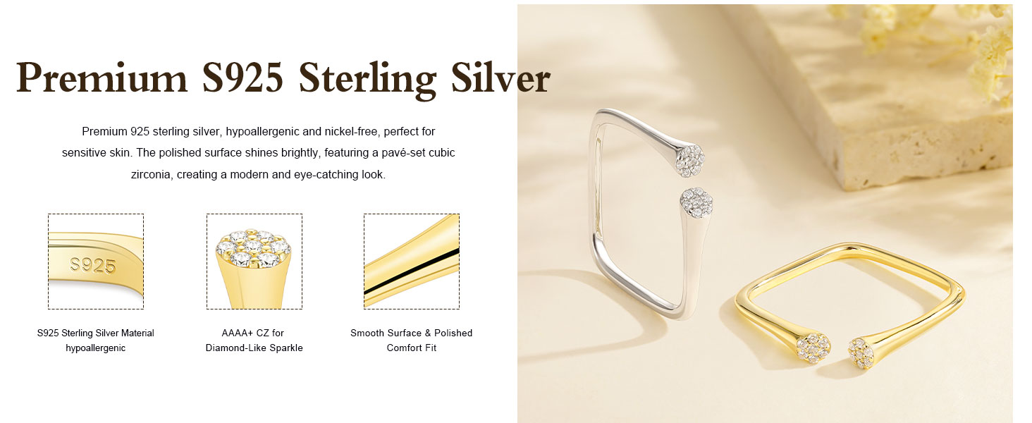 مادة فاخرة: مصنوعة من الفضة الإسترلينية المختومة S925، لا تسبب الحساسية وخالية من النيكل، مما يضمن لمعانًا طويل الأمد وعدم تهيج الجلد.