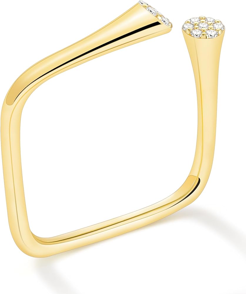 تصميم مربع مفتوح: شكل مربع هندسي مع أساور مفتوحة، مقاس قابل للتعديل قليلاً، مثالي للارتداء اليومي أو مع حلقاتك المفضلة
