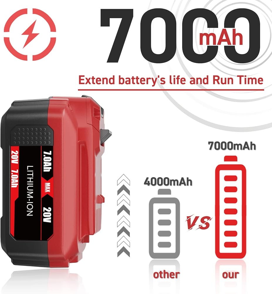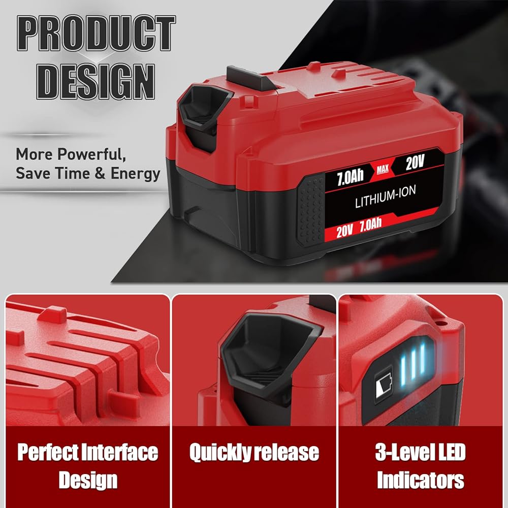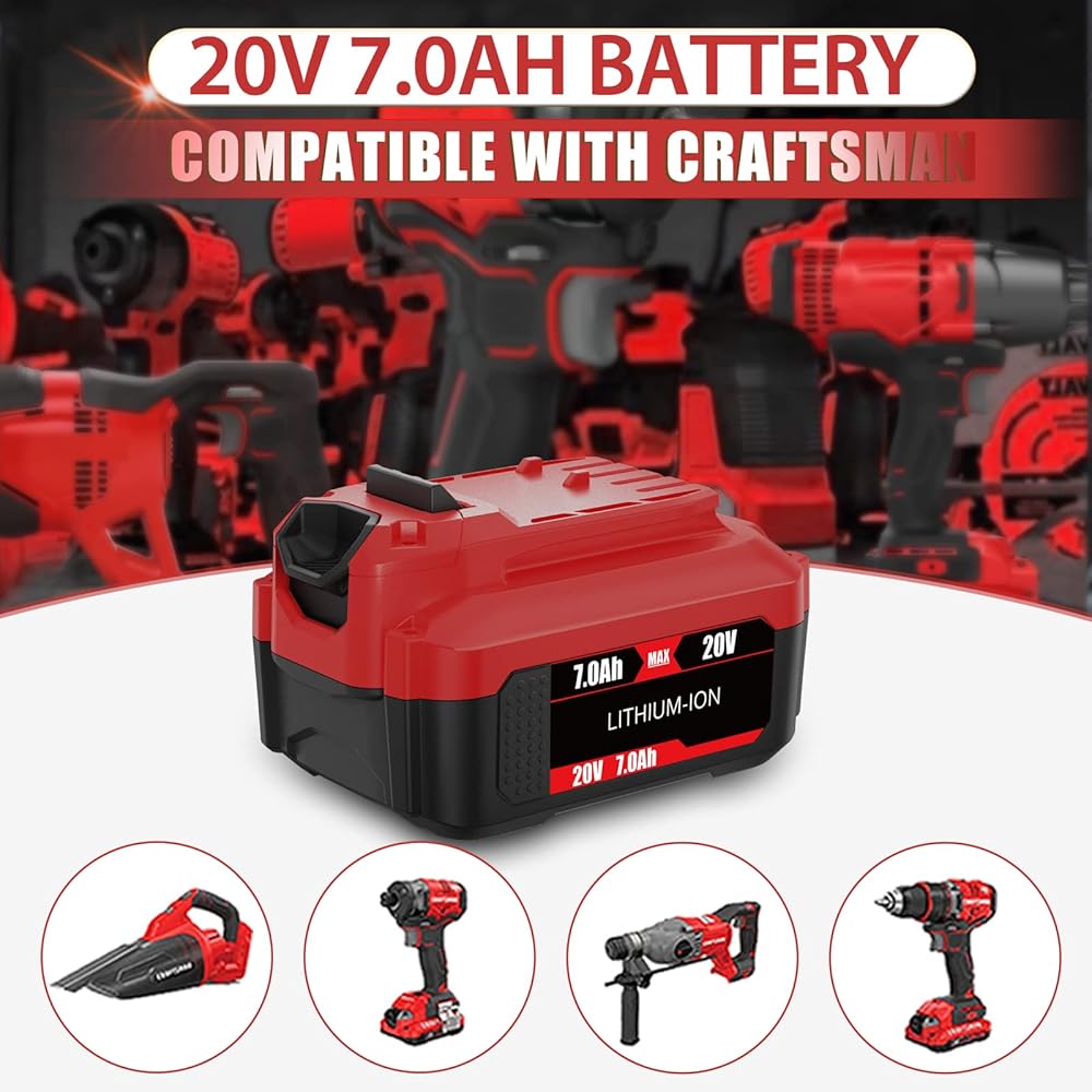 🔋 【النماذج القابلة للتطبيق: بطارية ليثيوم 20 فولت 7.0 أمبير هي بديل لـ CMCE520B، CMCS300B، CMCK210C2، CMCV002B، CMCS600B، CMCF900B، CMCL020B، CMCN616C1، CMCBL0100B، إلخ. (يرجى ملاحظة: منتجنا لا يناسب سلسلة Craftsman 20V max Bolt-On & DieHard.)