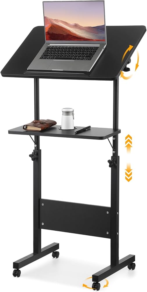 【تطبيق متعدد الاستخدامات】قم بتحويل مساحة العمل الخاصة بك باستخدام مكتب الجلوس المحمول هذا؛ مثالية للاستخدام كمنبر أو منصة أو عربة كمبيوتر محمول متدحرجة أو مكتب محمول؛ مثالية للمكاتب المنزلية والفصول الدراسية والعروض التقديمية؛ يوفر المرونة والوظائف لمختلف الإعدادات