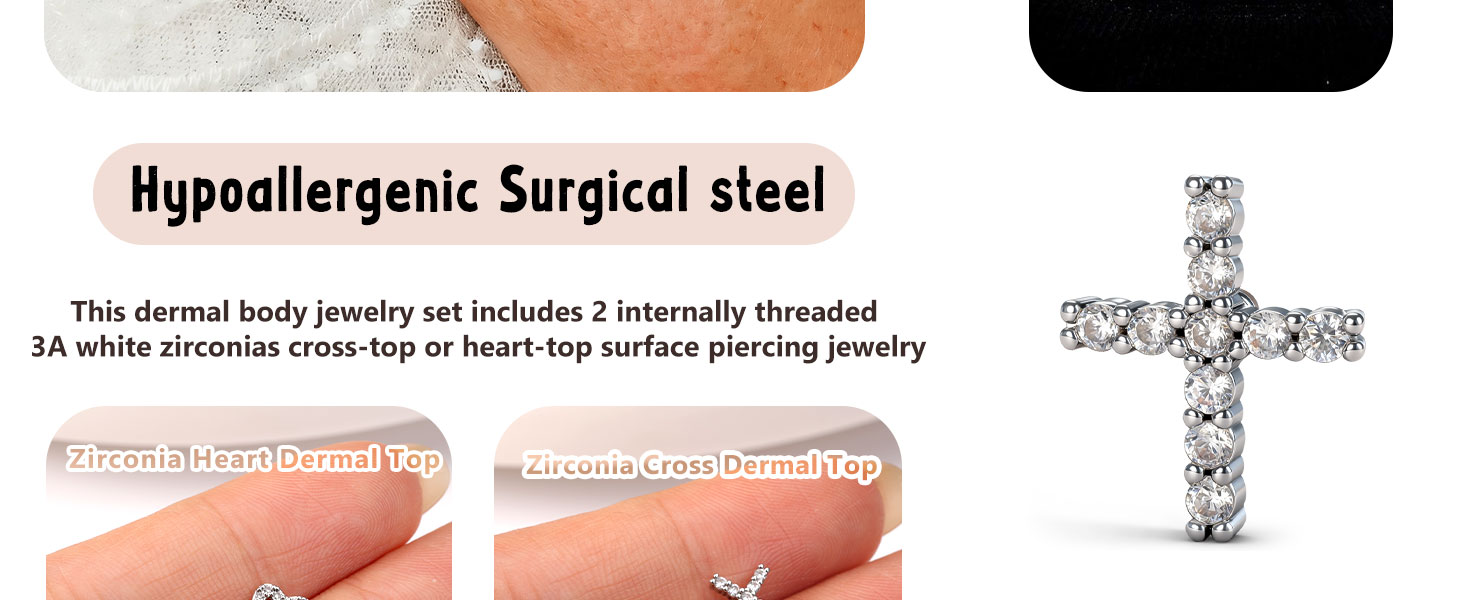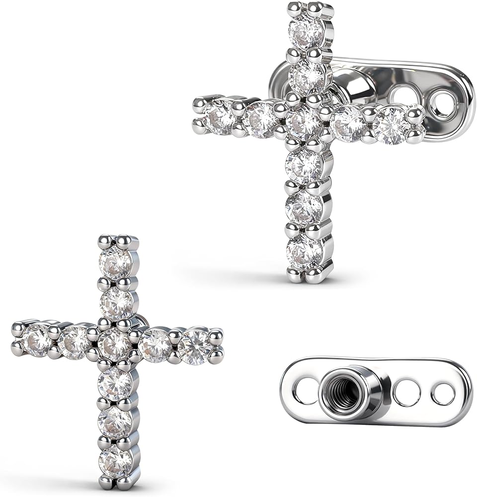 أبعاد دقيقة ومريحة: تتميز بسُمك عمود 1.6 مم (14 جم) وطول عمود 2.5 مم؛ يبلغ طول لوحة القاعدة 7.3 ملم وعرضها 2.6 ملم، ومغطاة بمجوهرات ثقب سطح القلب الساحرة بقياس 6.6 ملم × 6.4 ملم تقريبًا لملاءمة آمنة ومريحة