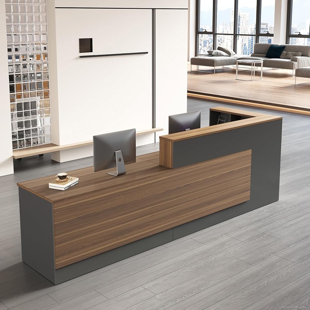 • طاولة مدمجة: تتميز بمساحة إضافية للأعمال الورقية وتفاعلات العملاء، وهي مثالية لمكتب استقبال به طاولة