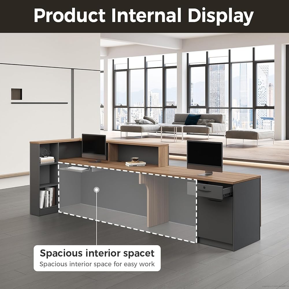 • مساحة عمل واسعة: توفر مساحة واسعة لمساحة عمل مريحة وفعالة، ومثالية لمكتب الاستقبال المزدحم