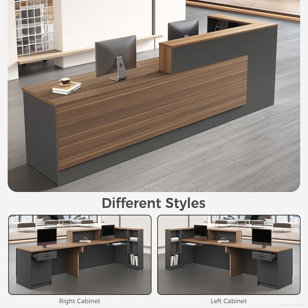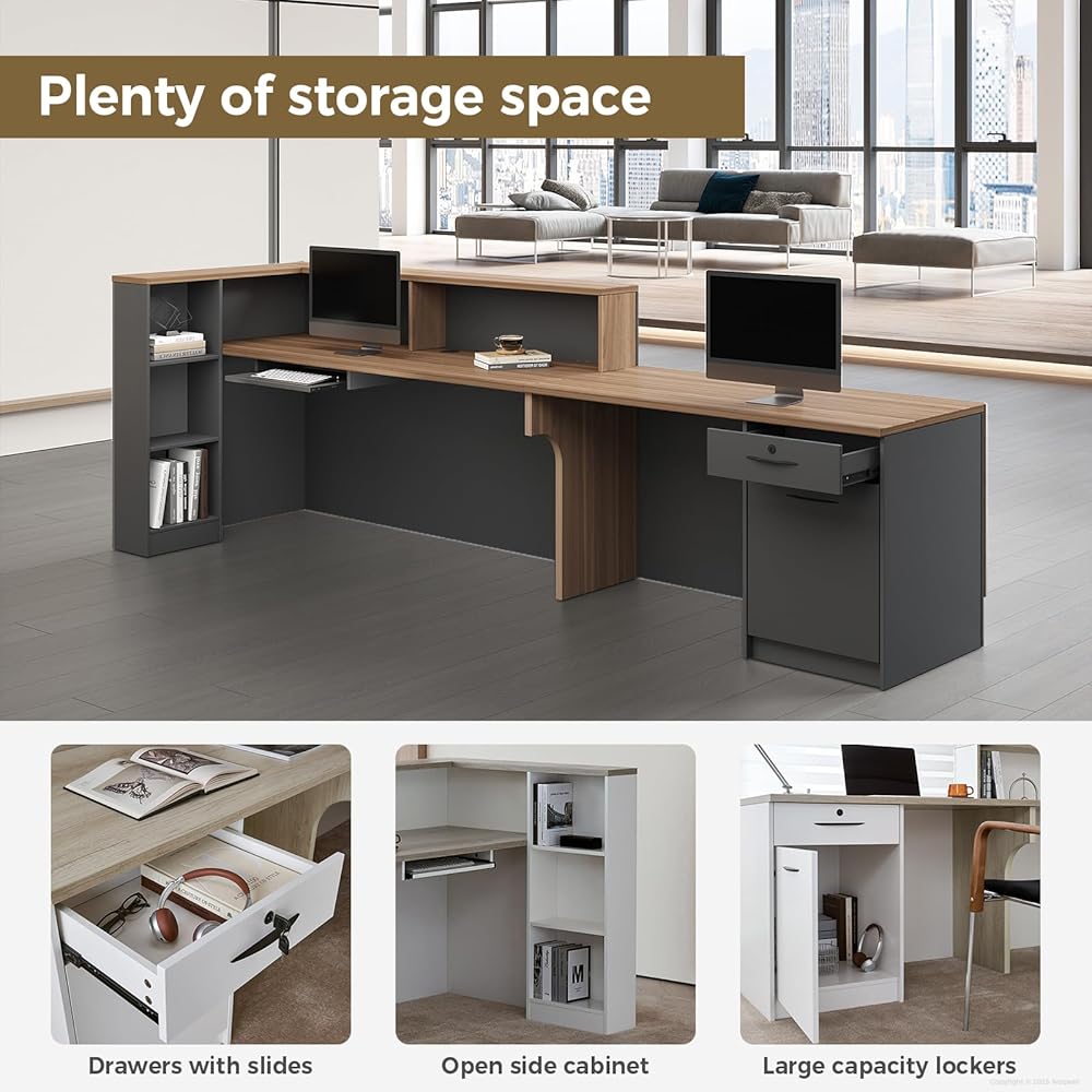 • مساحة تخزين كبيرة: تشتمل على أدراج وأرفف متعددة للحفاظ على تنظيم الأساسيات وسهولة الوصول إليها، وهي رائعة لمكتب الاستقبال