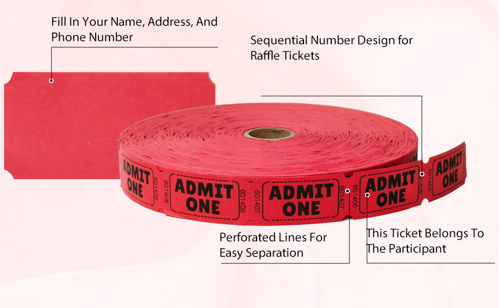 【مثالية لمختلف المناسبات】: تُعد لفافة تذاكر السحب الفردية هذه مثالية لمجموعة واسعة من الأحداث، بما في ذلك السحوبات وتجمعات الشركات والأنشطة المدرسية وحفلات أعياد الميلاد وحفلات جمع التبرعات والكرنفالات والمناسبات الخيرية واحتفالات العطلات. تساعد التذاكر عالية الجودة على تنظيم أحداثك بسلاسة.