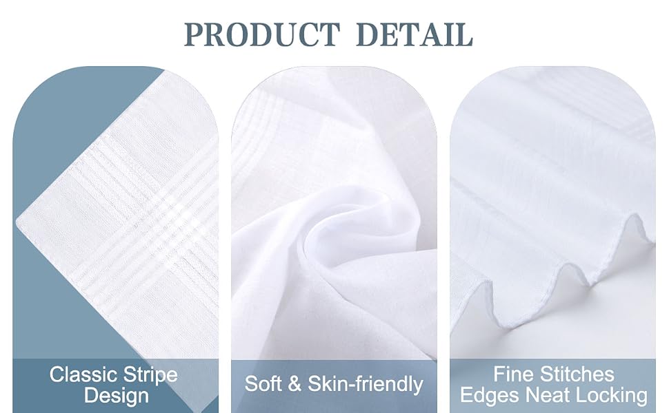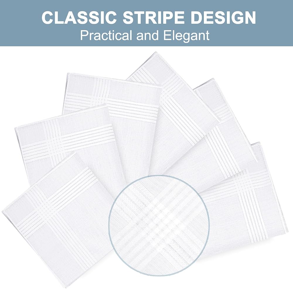 【تصميم كلاسيكي】مناديل رجالية بتصميم مخطط كلاسيكي، عملية وأنيقة. المنديل الأبيض مصنوع بتقنية الحواف الملفوفة، وحواف مغلقة بأناقة، وغرز دقيقة، مما يجعلها قوية ومتينة.