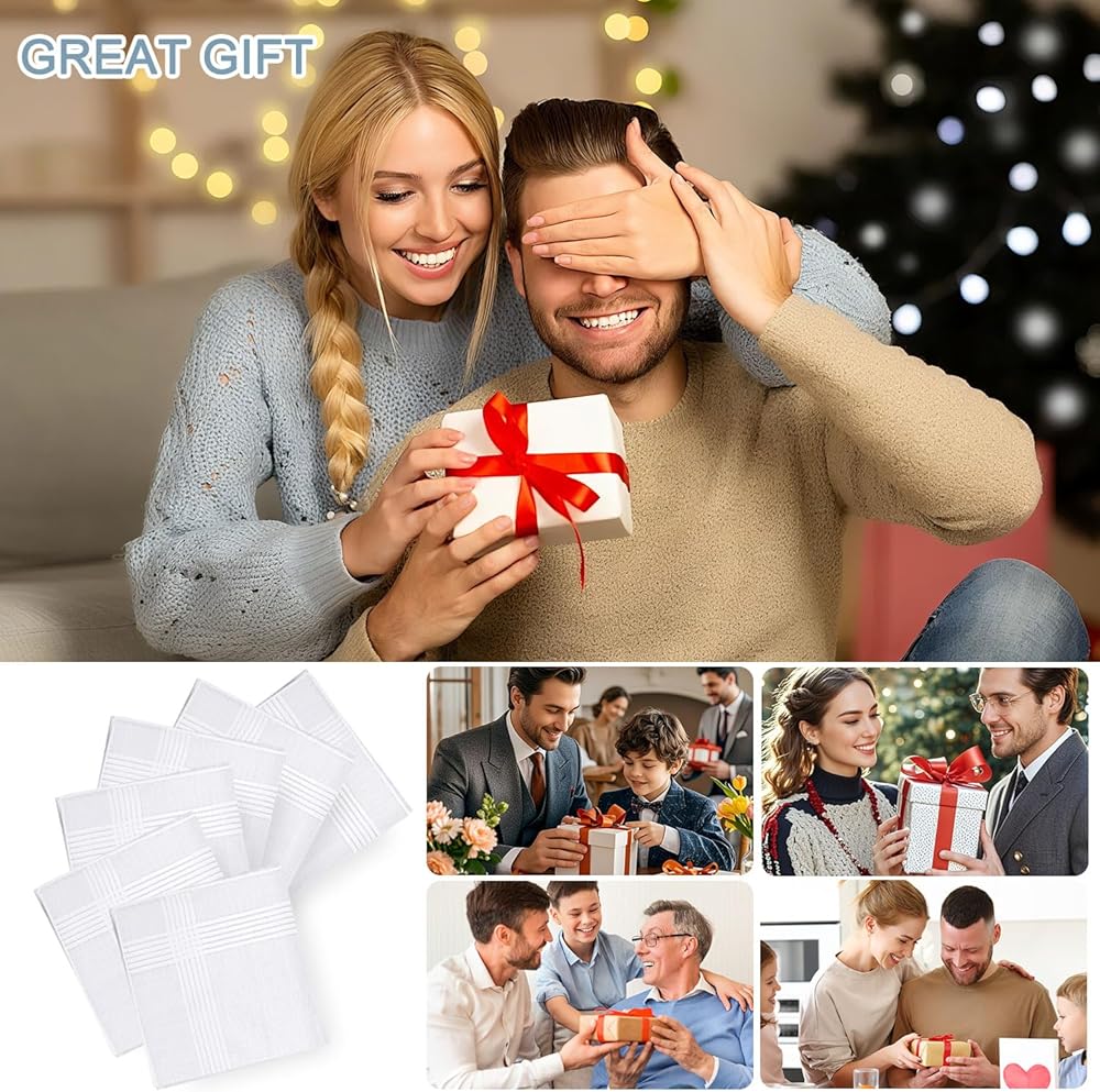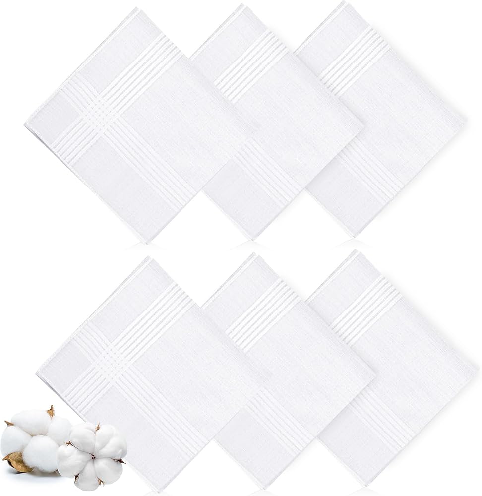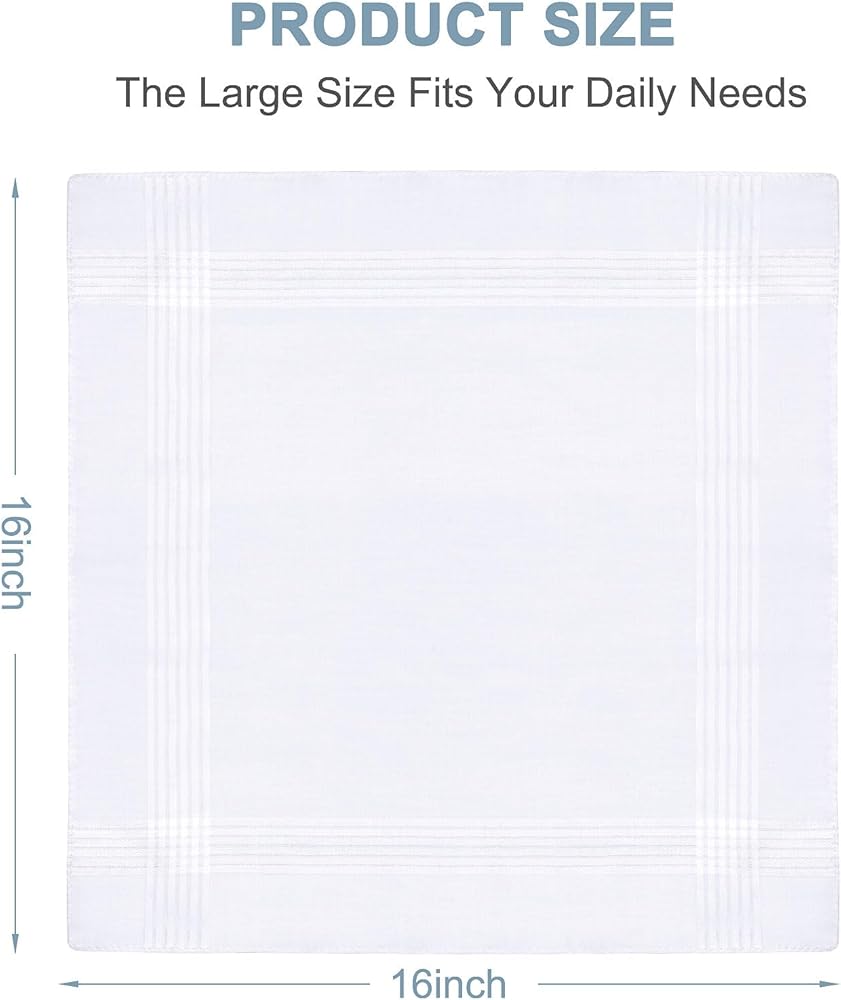 【هدية رائعة】سوف تحصل على 6 قطع من مناديل بيضاء للرجال، مقاس 40.64 × 40.64 سم. تعتبر هذه المناديل البيضاء للرجال هدايا عظيمة للآباء والأجداد والأزواج.