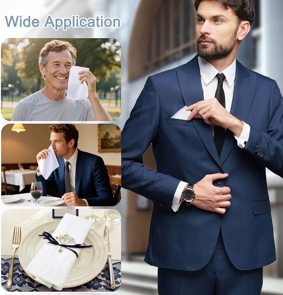 【خامة ممتازة】المناديل الرجالية مصنوعة من القطن الخالص عالي الجودة، هذه المناديل الرجالية أكثر نعومة وصديقة للجلد وامتصاص ومسامية من المناديل القطنية النقية العادية للرجال.