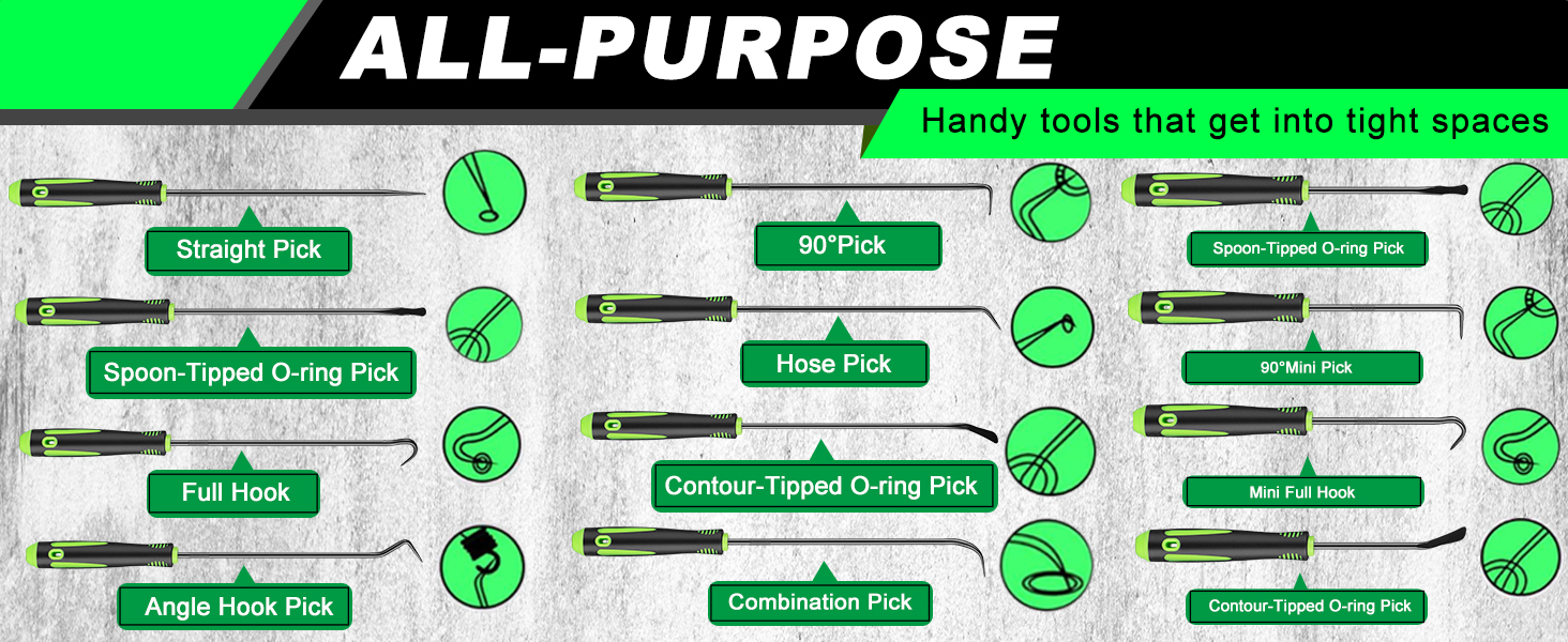 ✅ الاستخدام: تُستخدم مجموعة الالتقاط والخطاف هذه لنظام الإشعال، وصمام السحب، والأختام، وحلقة O لصمام الوقود، وحلقة O لنهاية الخرطوم والمزيد من الأجهزة الإلكترونية.