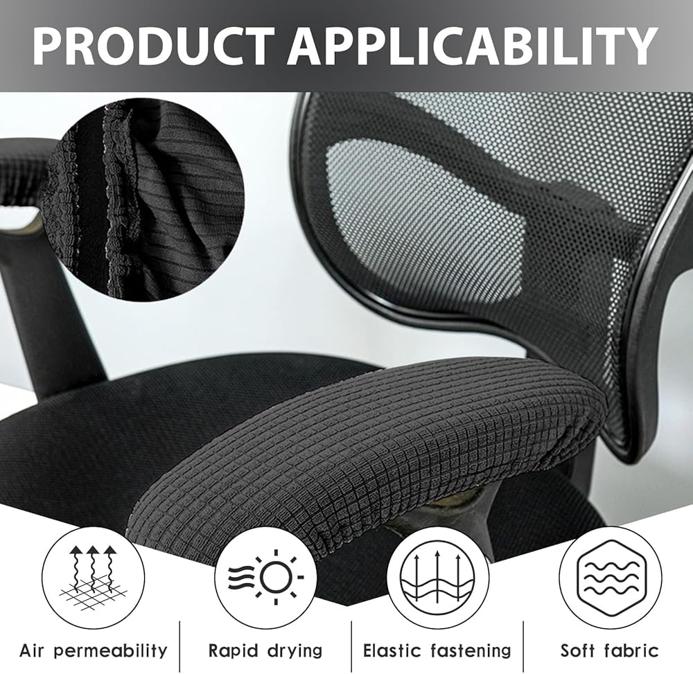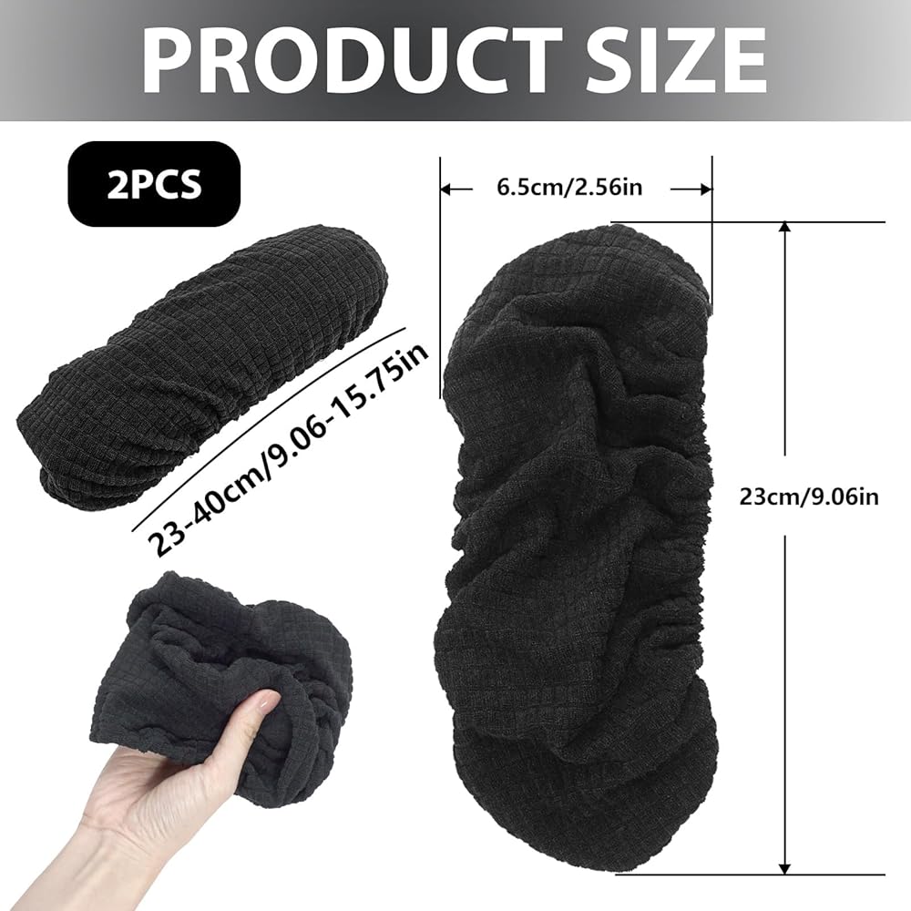 Crafted with both functionality and comfort in mind, with a stretchable polyester-spandex blend that adapts to armrests ranging from 9-15 inches in length. This versatility ensures a snug fit on most standard office chairs, from sleek modern designs to traditional desk chairs, as well as gaming chairs and home office setups. The 2-piece set provides complete coverage for both armrests, ensuring balanced comfort and protection for your daily routine.The secret to these covers' performance lies in their premium fabric blend: the outer layer is soft to the touch, providing a comfortable surface that reduces arm fatigue during extended sitting. Unlike hard plastic or wood armrests that can dig into skin or cause pressure points, these covers cushion your arms, making long work sessions or gaming marathons far more enjoyable. These arm covers are more than just protective—they're a simple upgrade that enhances your entire workspace. Office workers will appreciate the reduced arm strain during long typing sessions.The inner non-slip lining keeps the covers securely in place, even with frequent movement—no more adjusting slipping covers mid-meeting or while typing.