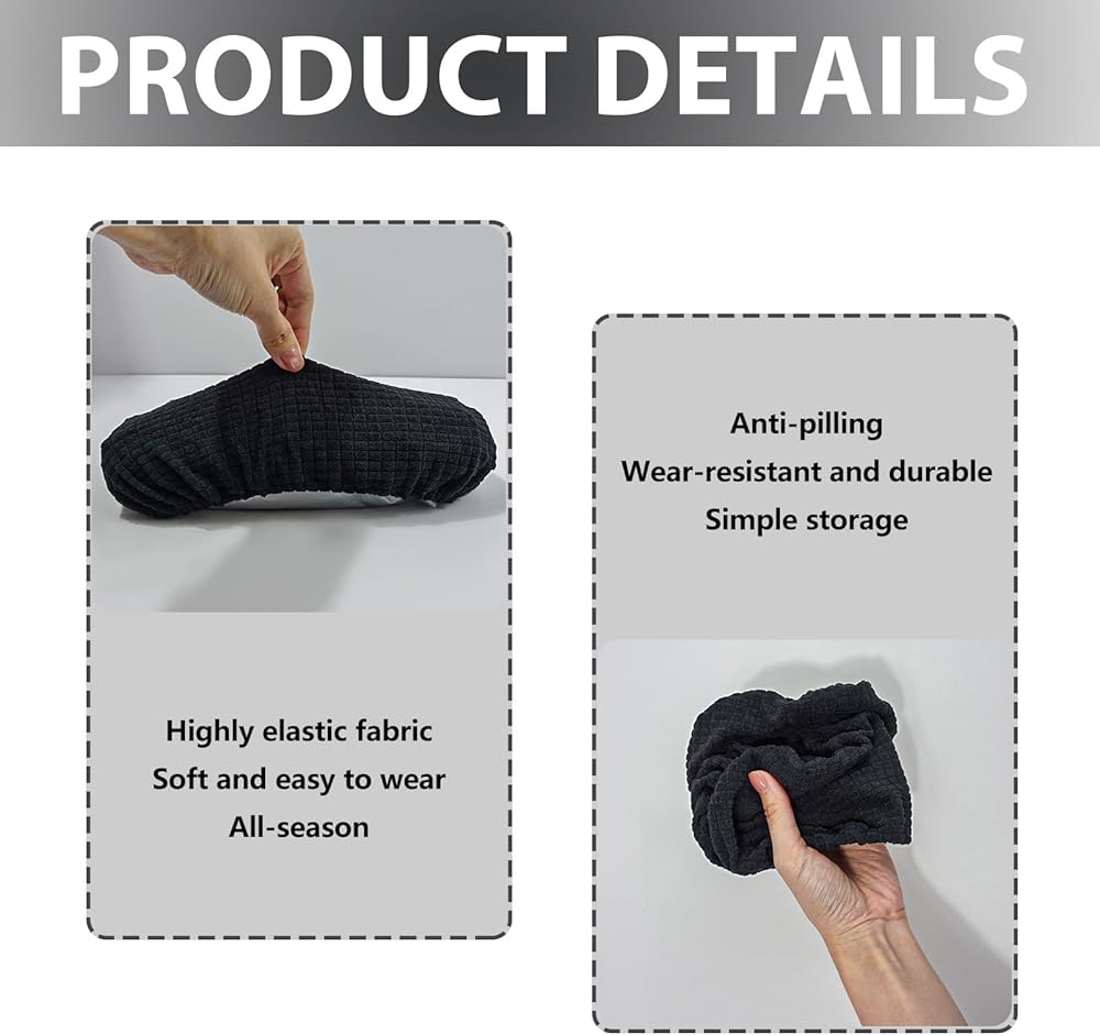 Installing these office chair arm pads is quick and tool-free: stretch the cover over the armrest, starting from the front edge, and pull snugly to fit around the armrest shape. The non-slip lining keeps the cover securely in place during daily use, preventing sliding or bunching. To clean office chair seat cover, remove the covers and machine wash on gentle cycle with mild detergent, then air dry—no shrinkage or fabric damage with proper care.
