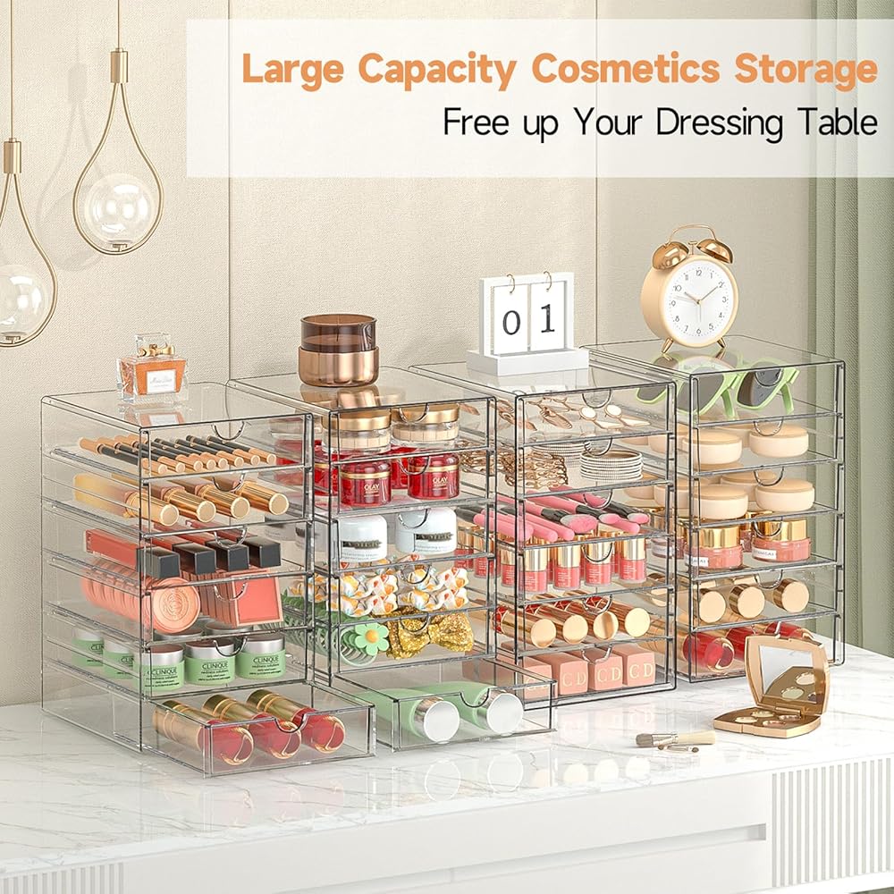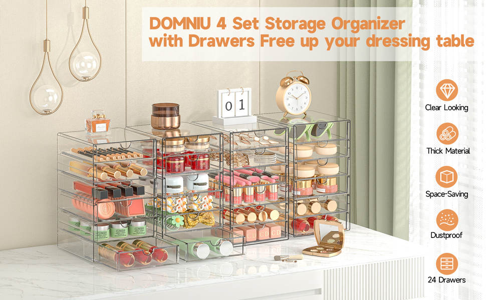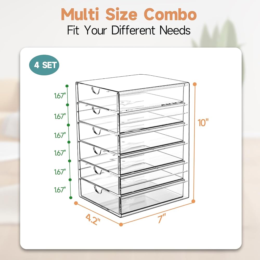 منظم تخزين درج المكياج مع 24 درجًا، 4 مجموعات من الأكريليك لتنظيم مكتب المكتب والتخزين، منظم درج مقاوم للغبار للمكياج، المكتب، سطح الطاولة، المجوهرات، القلم، سطح المكتب، الحمام، غرفة النوم