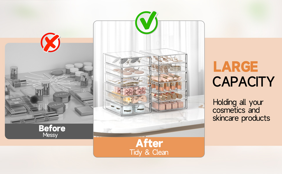 • 👍متعددة الأغراض وقابلة للتكديس - تساعدك أدراج التخزين لدينا على تنظيم المساحة بشكل أفضل في العديد من الأماكن في منزلك، ويمكن استخدامها كمنظم وتخزين للمكياج، ويمكن استخدامها أيضًا لتنظيم أدوات الزينة الصغيرة على سطح الحمام، وتخزين مجوهرات الأطفال، وأدوية الأسرة، وما إلى ذلك. يمكنك استخدام منظم التخزين الخاص بنا بمرونة لتنظيم المنزل والتخزين وفقًا لاحتياجاتك، ويمكن تكديسه في طبقات متعددة، مع الاستفادة الكاملة من المساحة الرأسية لتحقيق أقصى قدر من توفير مساحة التخزين وتحسينها.