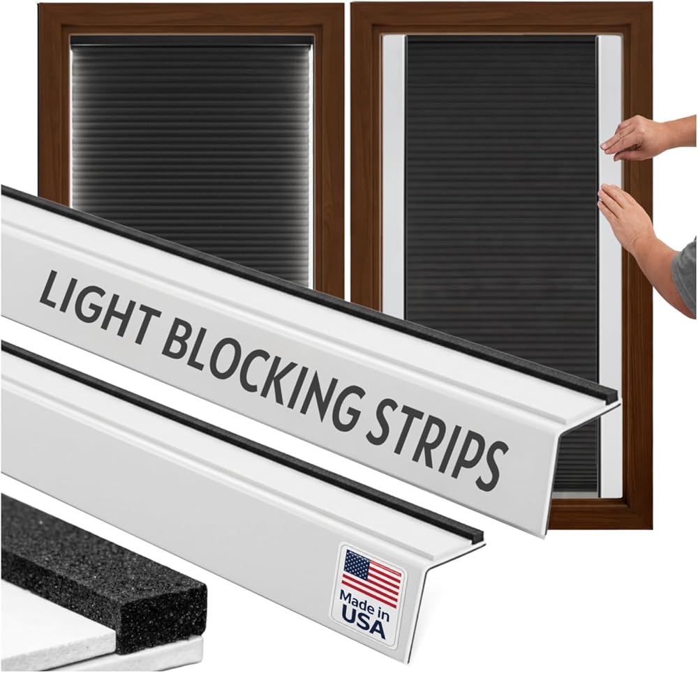 𝑬𝑳𝑰𝑴𝑰𝑵𝑨𝑻𝑬 𝑺𝑰𝑫𝑬 𝑳𝑰𝑮𝑯𝑻 𝑮𝑨𝑷𝑺 𝑰𝑵𝑺𝑻𝑨𝑵𝑻𝑳𝒀 – غالبًا ما تترك الستائر المعتمة والظلال فجوات تسمح بدخول الضوء. تعمل شرائط حجب الضوء للستائر كحاجز للضوء على جانب النافذة لإغلاق الحواف وتقليل تسرب الضوء. متوافق مع التركيبات الداخلية والخارجية. قم بتحسين النوم والخصوصية والتحكم في الوهج - ليلاً أو نهارًا - دون استبدال الستائر أو المظلات الموجودة.