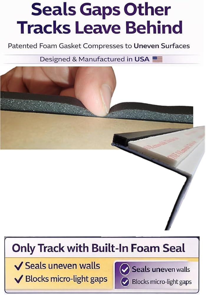 𝑻𝑯𝑬 𝑫𝑰𝑭𝑭𝑬𝑹𝑬𝑵𝑪𝑬 𝑰𝑺 𝑻𝑯𝑬 𝑺𝑬𝑨𝑳𝑰𝑵𝑮 𝑮𝑨𝑺𝑲𝑬𝑻 – تقوم حاجبات الضوء الموجودة على جوانب الستائر بإغلاق فجوات الضوء التي تتركها معظم ظلال التعتيم والستائر خلفها. على عكس المسارات الجانبية النموذجية للستائر، فإن الحشية الإسفنجية المدمجة الحاصلة على براءة اختراع تضغط على الجدران غير المستوية لإنشاء إغلاق أكثر إحكامًا وتقليل تسرب الضوء الجانبي. يعمل مانع ضوء النافذة هذا على تحسين أداء التعتيم للظلال الخلوية والظلال الدوارة والمزيد.