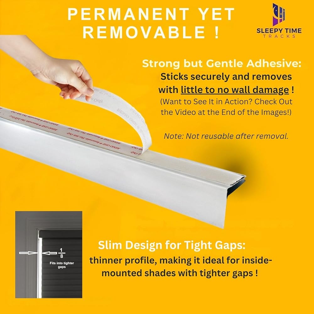 𝑹𝑬𝑴𝑶𝑽𝑬𝑺 𝑾𝑰𝑻𝑯 𝑳𝑰𝑻𝑻𝑳𝑬 𝑻𝑶 𝑵𝑶 𝑫𝑨𝑴𝑨𝑮𝑬 𝑻𝑶 𝒀𝑶𝑼𝑹 𝑾𝑨𝑳𝑳 – تستخدم شرائط حجب ضوء النوافذ لدينا دعامة لاصقة عالية الأداء تبقى ثابتة في مكانها خلال التغيرات الشديدة في درجات الحرارة، ومع ذلك ستتم إزالة هذه المسارات الجانبية المعتمة دون حدوث أي ضرر يذكر لحائطك.