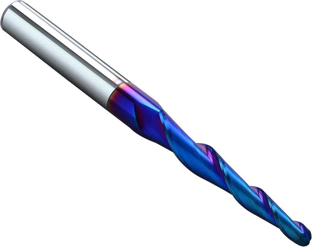 Ruhi T2110BC 2 أنف كروي فلوت CNC 2D و3D نحت 2.4 درجة SuperRun مطلي بقطع مع ساق 1/8 بوصة × 1 1/2 بوصة × 1/4 بوصة × 3 بوصة 1/4 بوصة