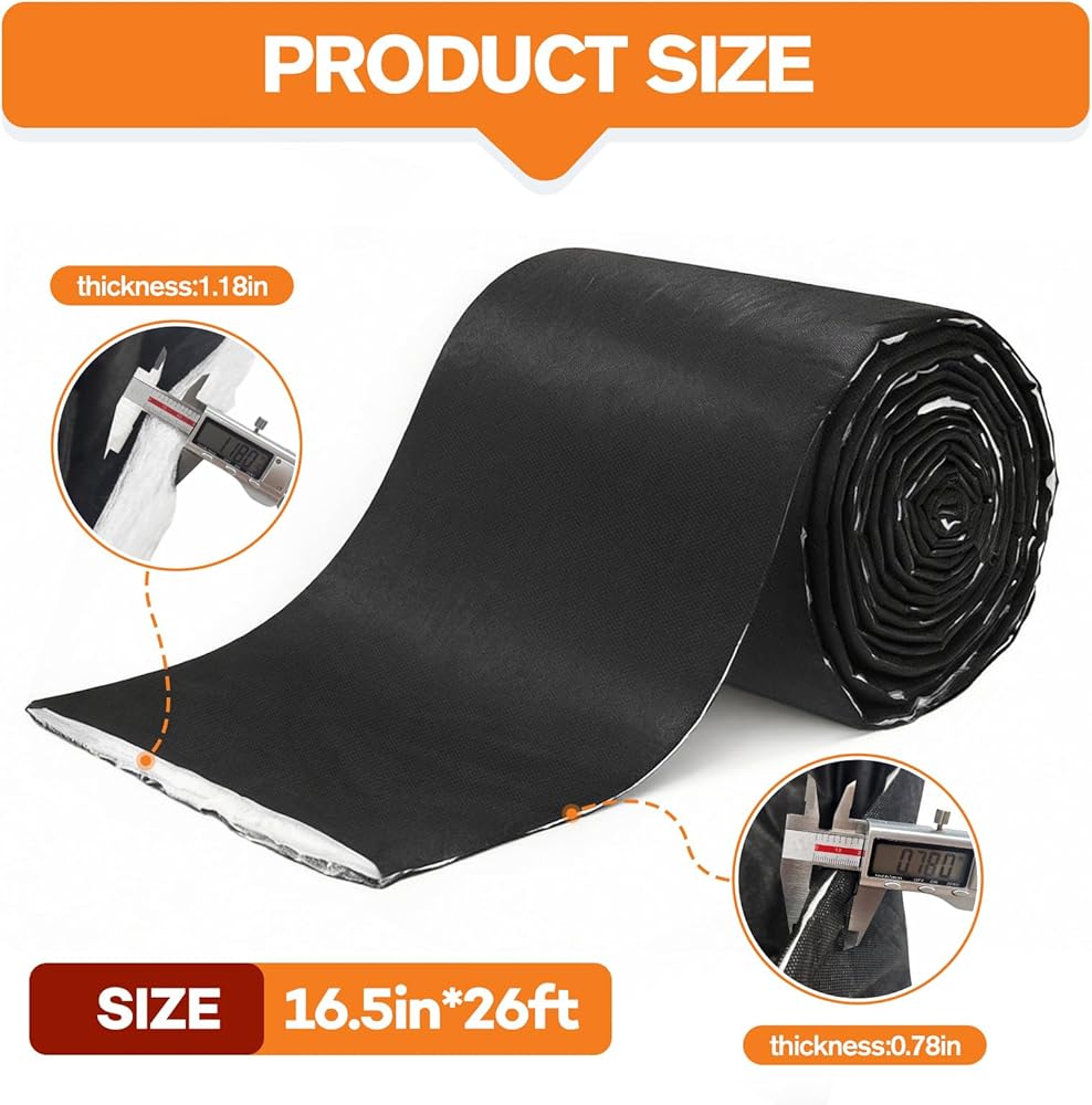 Complete Insulation Solution : This van insulation roll provides a generous 16.5-inch width and 315-inch length of ready-to-install insulation ; The material is approximately 1.18 inches thick with a reinforced 0.78-inch black fabric edge for added durability during handling and fitting