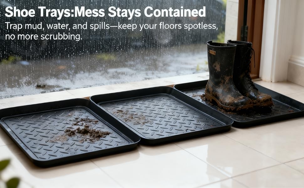 DZS 3 عبوات من صينية الأحذية البلاستيكية وحصيرة التمهيد، صينية مدخل متينة مقاومة للماء للاستخدام الداخلي، مجموعة متعددة للأحذية الموحلة والرطبة
