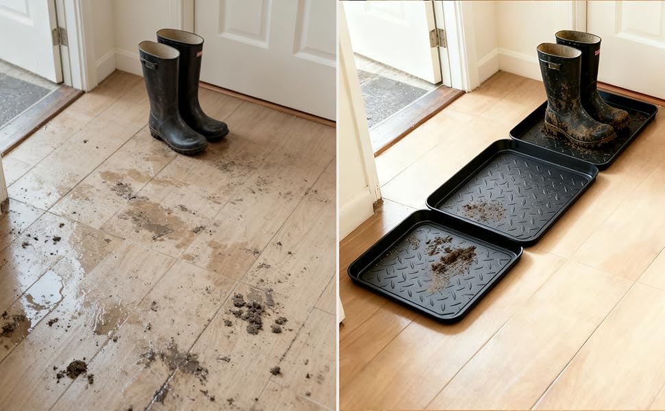 • 【متعددة الاستخدامات للمنزل وما بعده】أكثر من مجرد صينية أحذية! استخدمها كممسحة أرجل، أو سجادة لتغذية الحيوانات الأليفة، أو وسادة تدريب الجراء، أو بطانة صندوق الفضلات، أو صينية الأدوات، أو ركبة البستنة، أو للاستخدام في الهواء الطلق. تنوعها يلبي احتياجات لا حصر لها في الداخل والخارج.