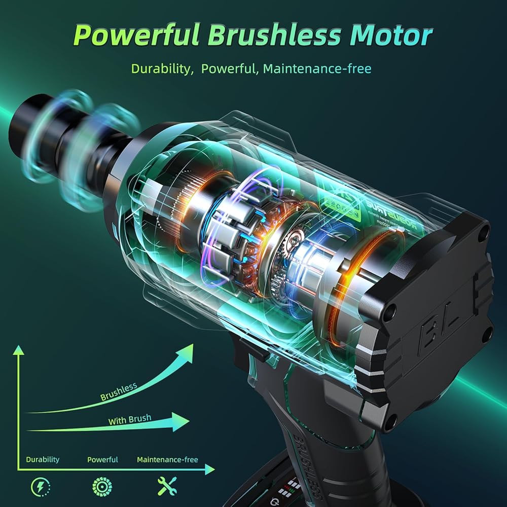 The impact wrench is a powerful and versatile tool designed to make fastening and loosening tasks easier and more efficient. With its brushless motor, it delivers rapid and high torque, saving you time and effort compared to traditional manual wrenches. Also, it suitable for various applications, including automotive repairs, construction projects, and DIY tasks. Its advanced features and ease of use make it an essential addition to any toolbox, providing both professionals and DIY enthusiasts with the power and convenience they need to complete their projects with speed and precision.
