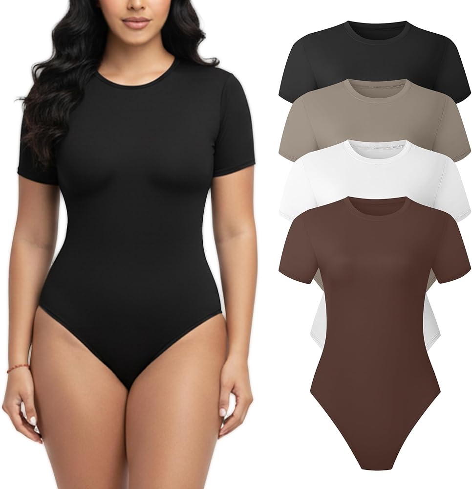 Dalvch 1 أو 4 قطع بدلة للجسم بأكمام قصيرة للنساء ورقبة دائرية قابلة للتمدد كاجوال أساسية مناسبة للجسم تي شيرت علوي in Kuwait Dalvch 1 أو 4 قطع بدلة للجسم بأكمام قصيرة للنساء ورقبة دائرية قابلة للتمدد كاجوال أساسية مناسبة للجسم تي شيرت علوي in Kuwait