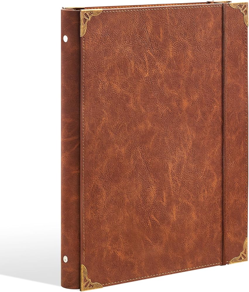 • غطاء جلدي: يتميز الغلاف ذو الثلاث حلقات بغطاء صلب على الطراز العتيق أنيق وأنيق، مما يوفر الراحة للتنظيم والتخزين مع توفير حماية أفضل للصفحة من أغطية PVC التقليدية.