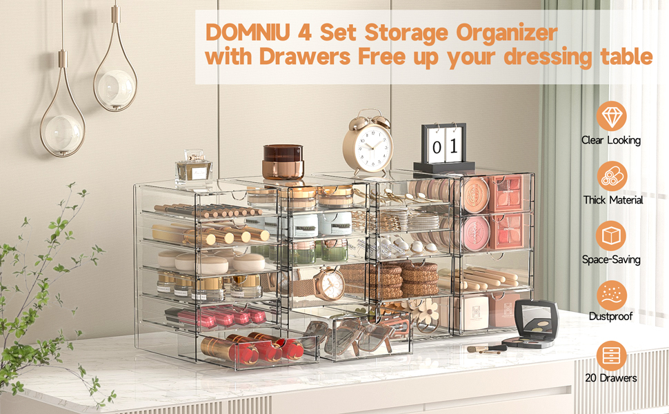 منظم تخزين درج المكياج مع 20 درجًا، 4 مجموعات من الأكريليك لتنظيم مكتب المكتب والتخزين، منظم درج مقاوم للغبار للمكياج، المكتب، سطح الطاولة، المجوهرات، القلم، سطح المكتب، الحمام، غرفة النوم