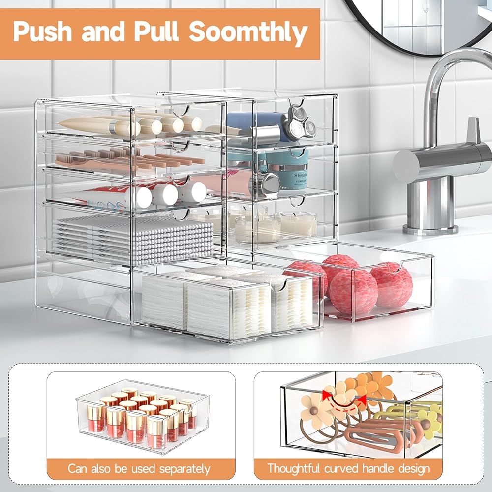 👍متعددة الأغراض وقابلة للتكديس - تساعدك أدراج التخزين لدينا على تنظيم المساحة بشكل أفضل في العديد من الأماكن في منزلك، ويمكن استخدامها كمنظم وتخزين للمكياج، ويمكن استخدامها أيضًا لتنظيم أدوات الزينة الصغيرة على سطح الحمام، وتخزين مجوهرات الأطفال، وأدوية الأسرة، وما إلى ذلك. يمكنك استخدام منظم التخزين الخاص بنا بمرونة لتنظيم المنزل والتخزين وفقًا لاحتياجاتك، ويمكن تكديسه في طبقات متعددة، مع الاستفادة الكاملة من المساحة الرأسية لتحقيق أقصى قدر من توفير مساحة التخزين وتحسينها.