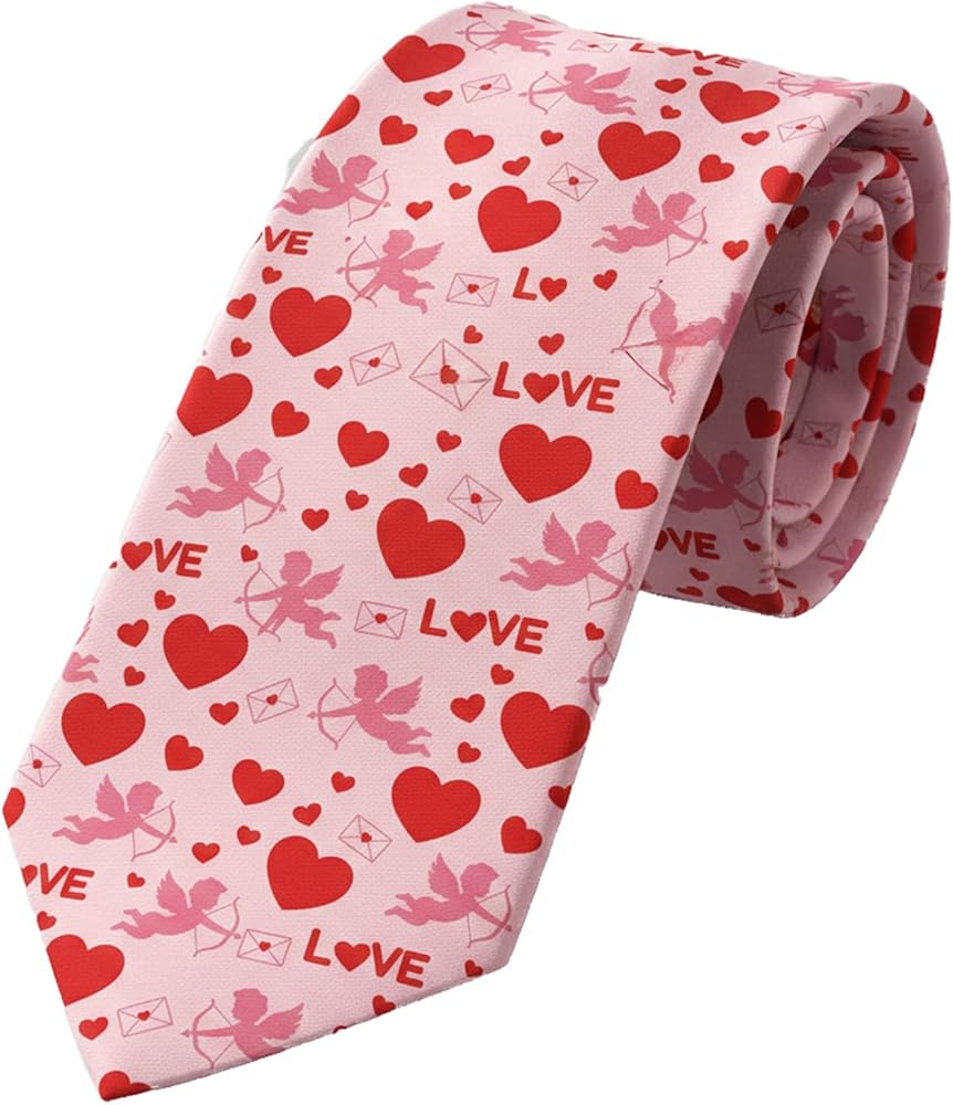 • نمط القلوب: قلوب حمراء ووردية متناثرة عبر ربطة العنق تخلق مظهرًا رومانسيًا واحتفاليًا