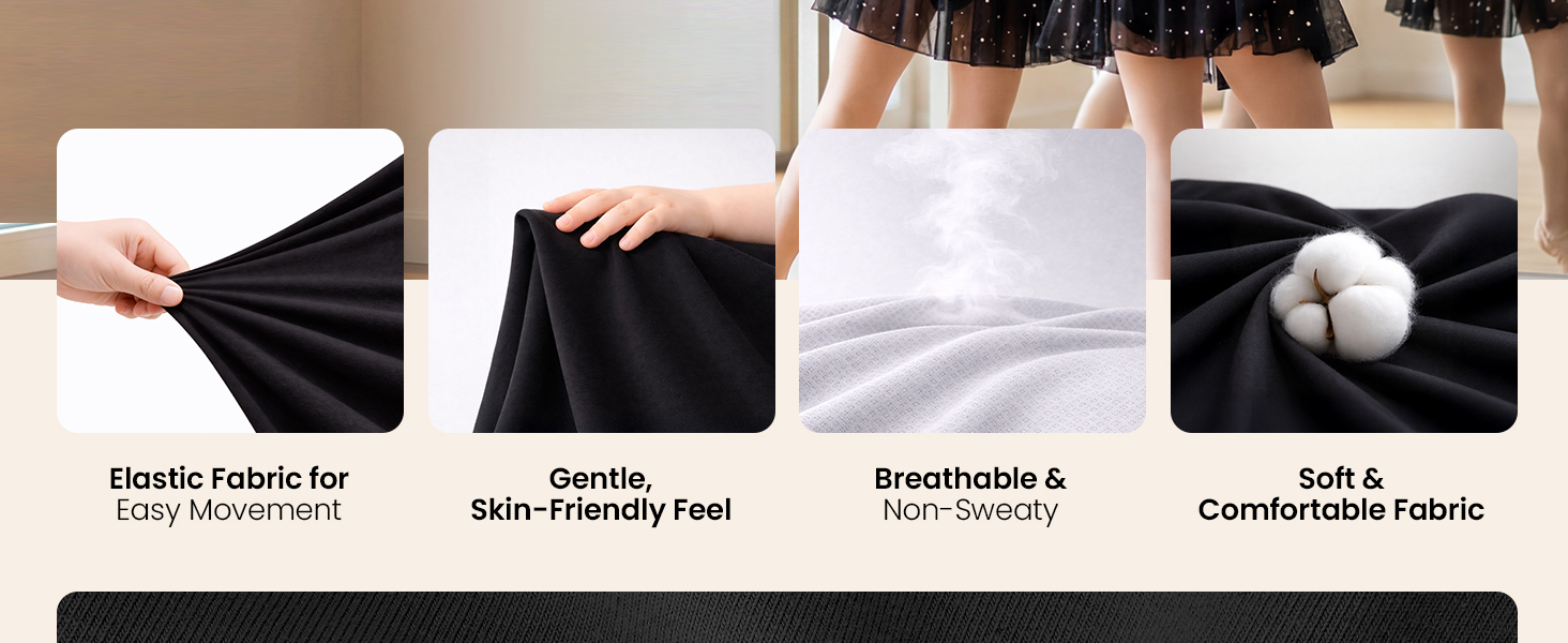 • راحة قطنية فائقة النعومة: تنانير الرقص الخاصة بنا مصنوعة من نسيج مزيج القطن الفاخر الذي يوفر تهوية فائقة وخصائص مقاومة للعرق. على عكس الملابس الاصطناعية الخشنة، فإن هذا النسيج عالي المرونة ناعم ويتوافق مع البشرة الحساسة، مما يضمن بقاء راقصة الباليه الصغيرة مرتاحة وخالية من الحكة خلال جلسات التدريب الطويلة.