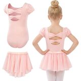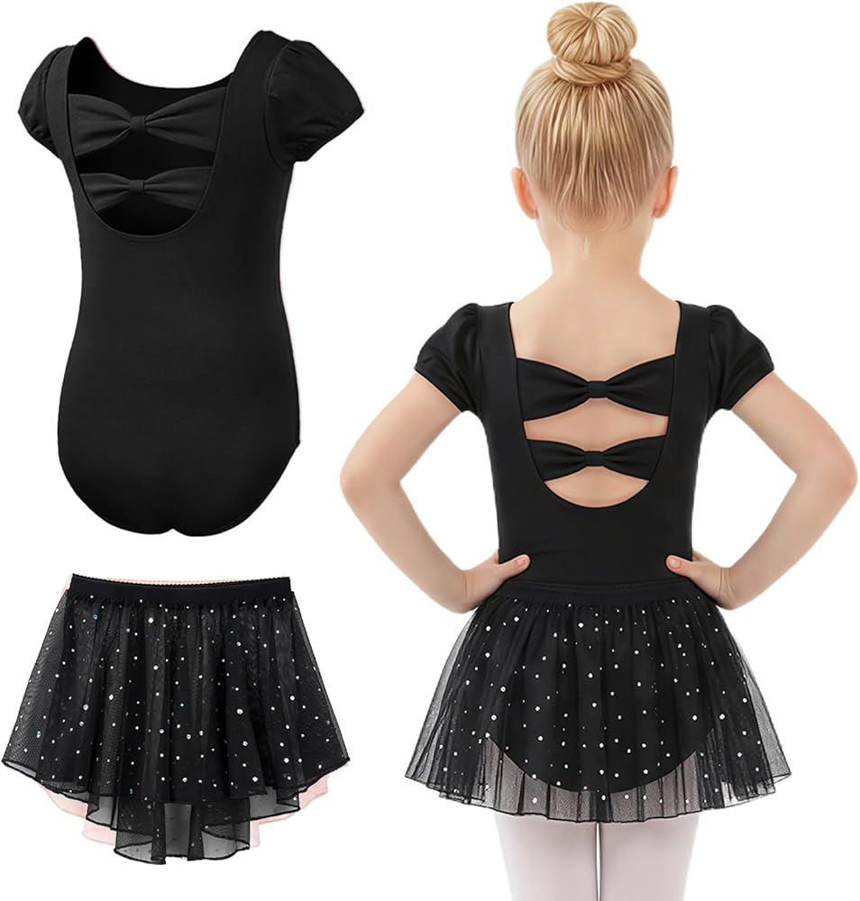 ملابس باليه للفتيات من Gogokids مع تنورة قابلة للإزالة، فستان رقص للأطفال الصغار مع فيونكة مجوفة من الخلف 3-11 سنة in Kuwait