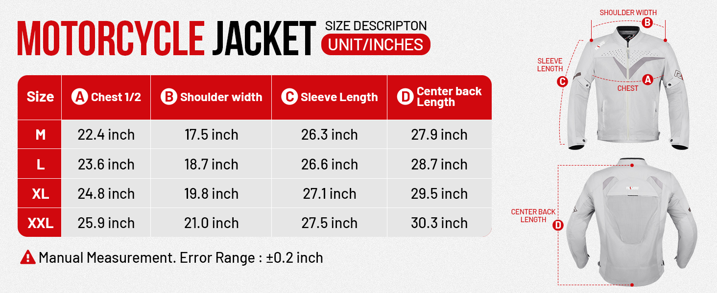 • مريحة في الارتداء: تم تصميم مرفقي وأكتاف بدلة الدراجة النارية هندسيًا لتتوافق مع الانحناء الطبيعي لجسمك، لذلك لن تكون ضيقة أثناء الركوب، مما يجعل رحلتك أكثر راحة. أطراف أكمام وأذرع وحاشية قابلة للتعديل لتحسين الملاءمة والراحة.