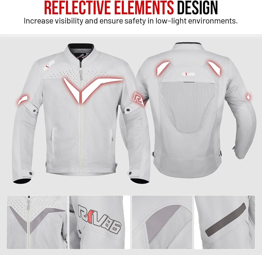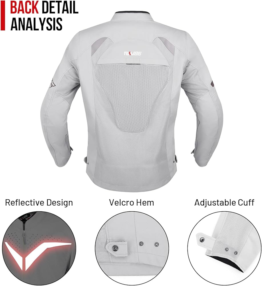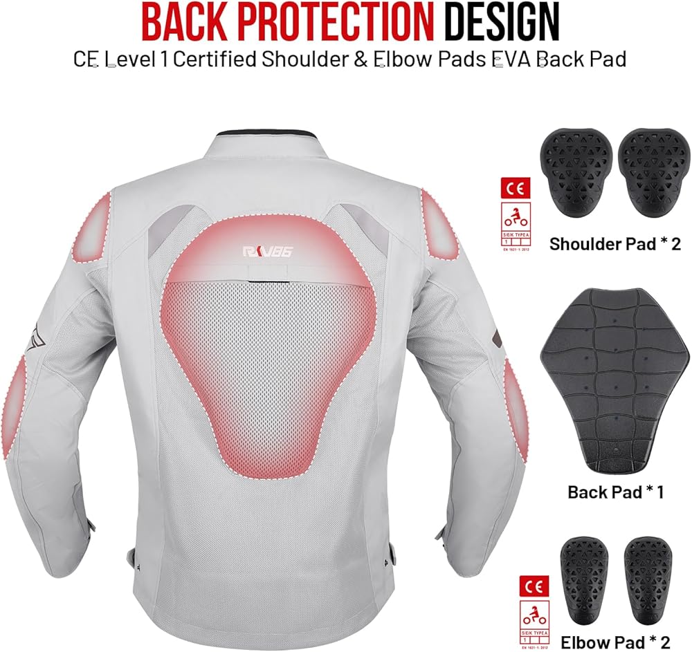 • نسيج مقاوم للتآكل: سترة دراجة نارية RKV86 مصنوعة من قماش أكسفورد 600D مع نسيج شبكي مسامي، ناعم الملمس، مريح ومسامي، مقاوم للاهتراء ومتين. سترة راكبي الدراجات النارية هذه مناسبة للربيع والصيف والخريف، مما يبقيك في درجة حرارة مريحة للجسم.