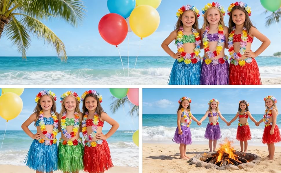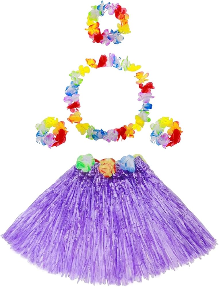 مجموعة أزياء الحفلات الغنية: مجموعة أزياء Hula غنية بما يكفي لتجعلك أكثر من أسلوب لوا. ستبدو جاهزًا للجزيرة في تنورة عشبية جميلة أساسية مع زهور الكركديه القماشية الملونة المرفقة بالخصر المرن، مما يتناسب مع أساور المعصم.