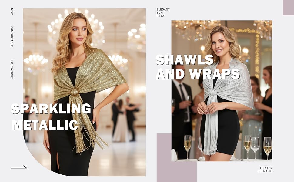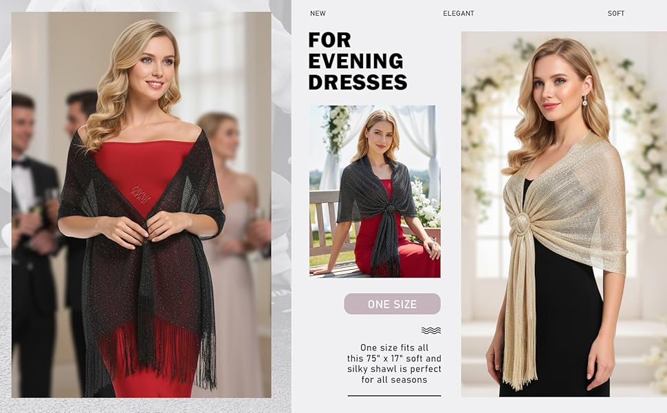 متعدد الاستخدامات لأي مناسبة: هذا الباشمينا المسائي اللامع يكمل دون عناء مجموعة واسعة من الملابس - مثالي لحفلات الزفاف، وفساتين وصيفات العروس، وحفلات الكوكتيل، والحفلات الراقصة، وغيرها من المناسبات الخاصة. إكسسوار أنيق وغير موسمي مثالي للنساء والفتيات المراهقات على حدٍ سواء.