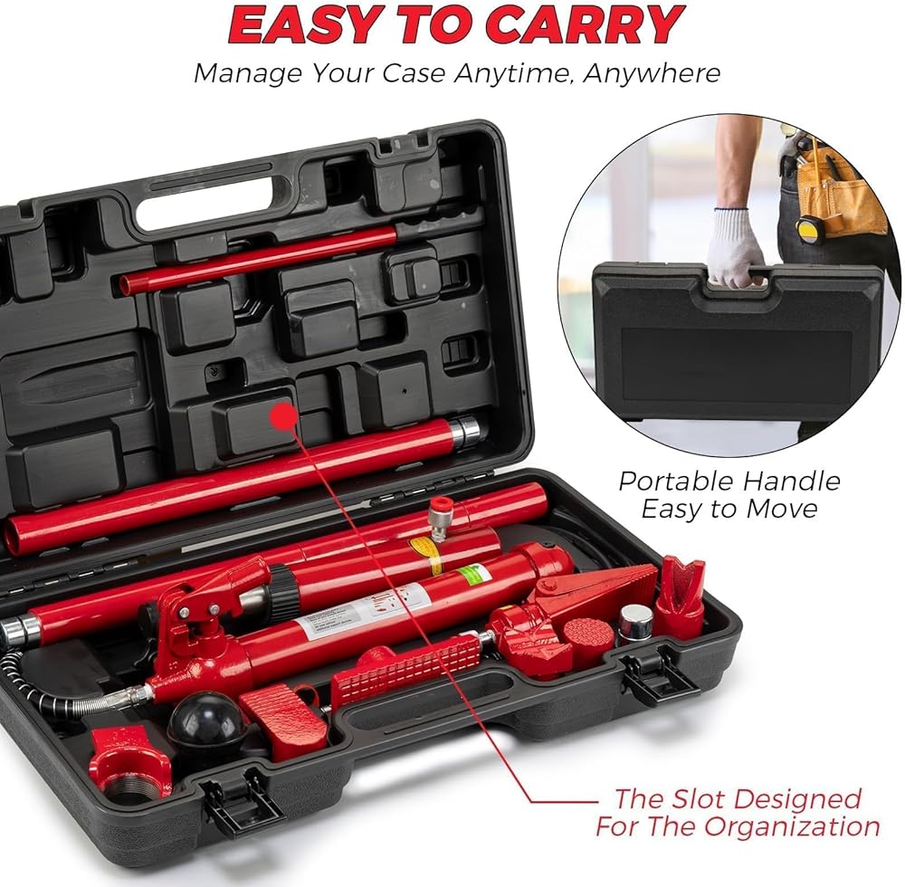 Every component is conveniently organized in a portable, heavy-duty storage case. Take your repair tools wherever you need them and keep everything organized for faster job turnaround. For mechanics, auto body professionals, or serious DIYers, this hydraulic porta power kit is your ticket to faster, safer, and more reliable frame repair.
