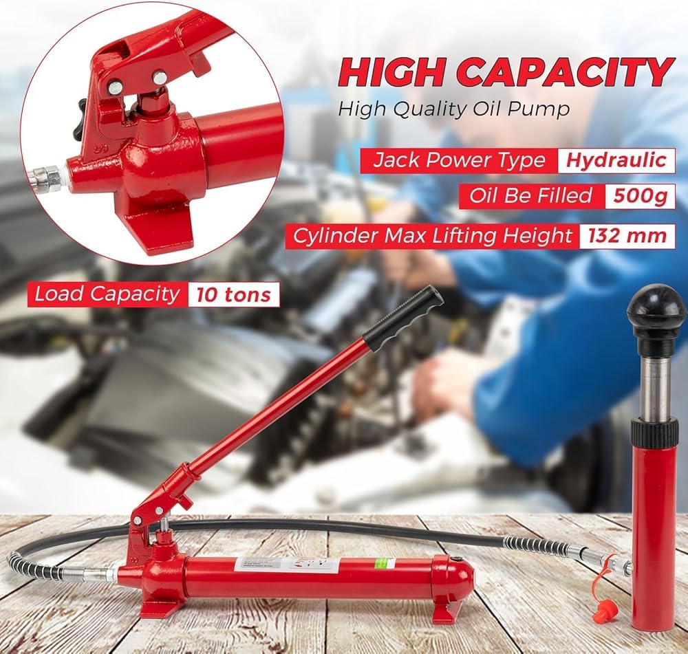 Experience professional-grade repair power with the Heavy Duty 12 Ton Hydraulic Porta Power Kit—the go-to solution for automotive frame repair, truck maintenance, and heavy equipment adjustments. With a lifting capacity of 26,455 lbs and built-in overload protection, this kit ensures both powerful performance and superior safety no matter the size of the job.