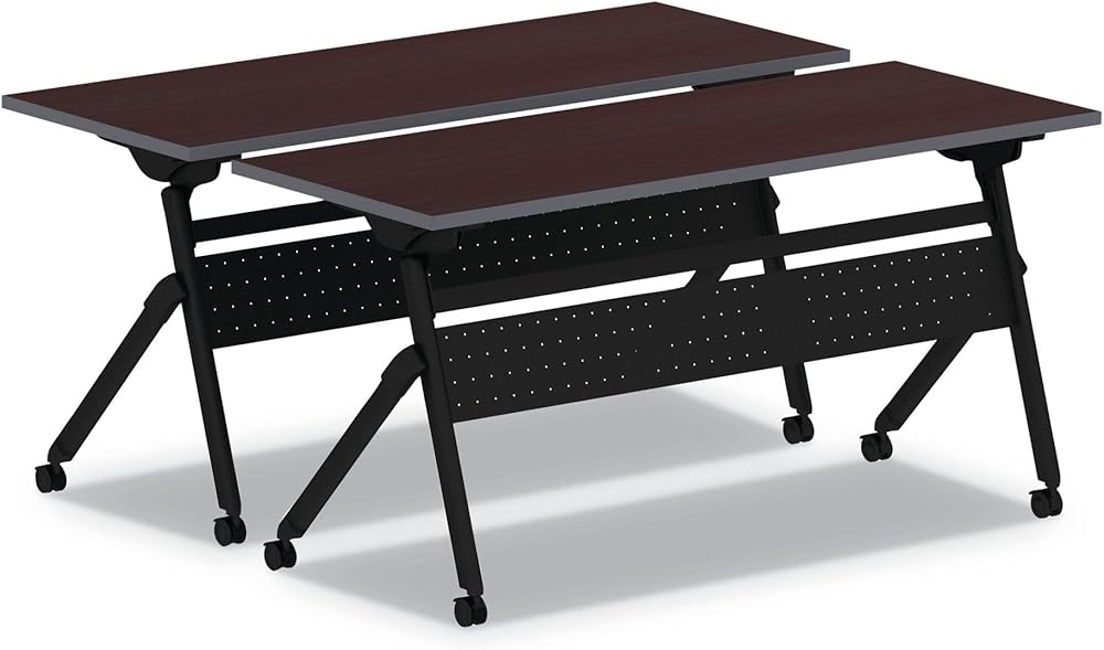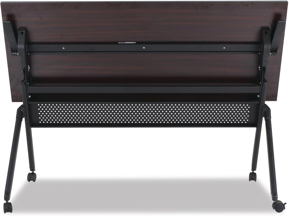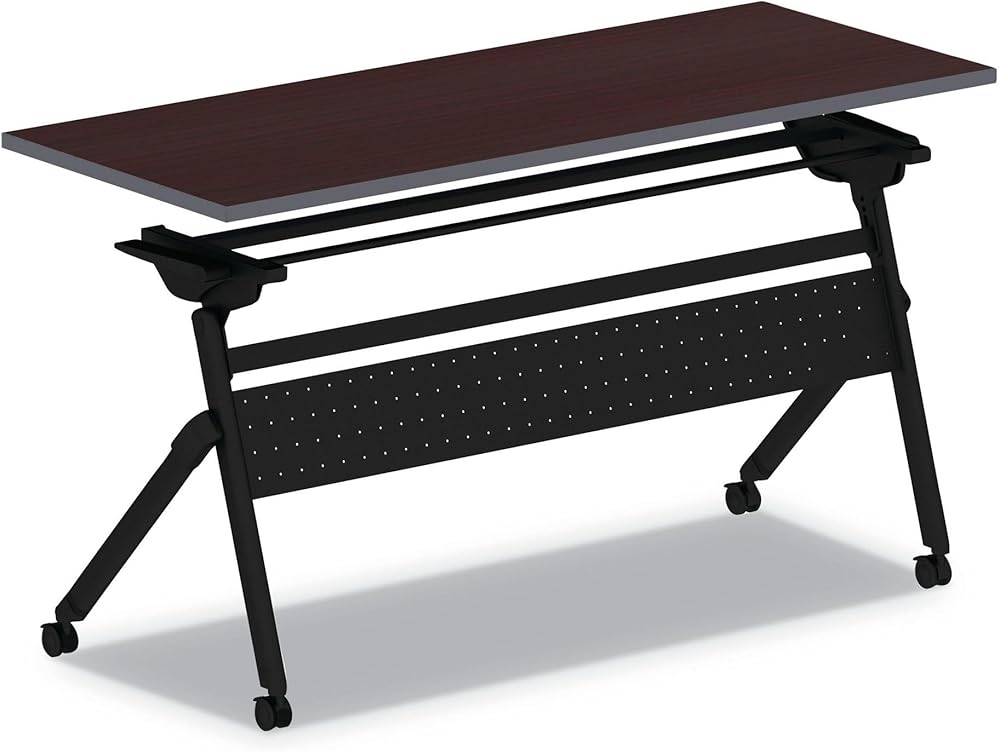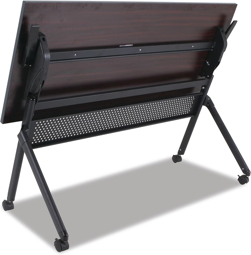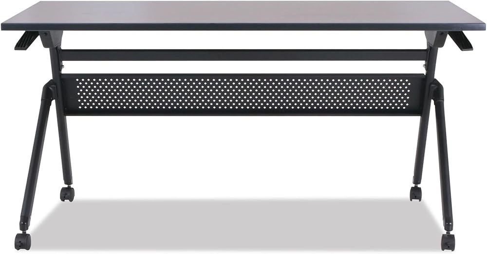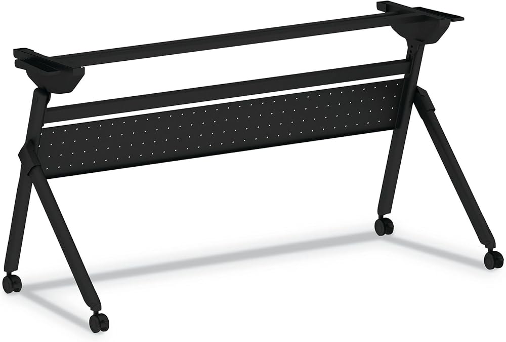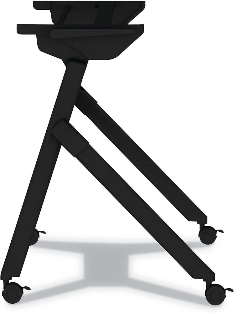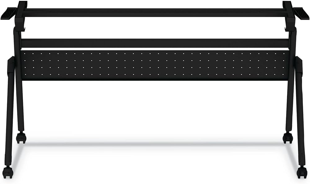 With a handy lever on both sides, simply flip-up for fast setup or flip-down to nest away. Vertically aligned nesting design ensures a small storage footprint. Includes detachable punched-metal privacy panel. Compatible with most table tops. Durable, powder-coated steel resists chipping and scratching. Four locking casters for mobility or four glides for fixed usage. All hardware included.