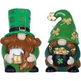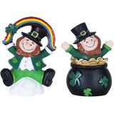 MEETYAMOR زينة يوم القديس باتريك، قطعتان من تمثال الجني الأيرلندي لديكور يوم القديس باتريك، وعاء شامروك قوس قزح من التماثيل الذهبية تقف لرف طاولة المنزل، ديكورات يوم القديس باتريك