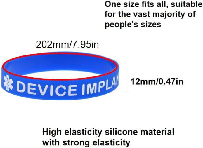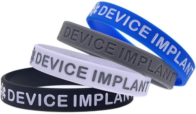 5 عبوات من أساور المعصم المصنوعة من السيليكون للتنبيه الطبي بدون جهاز التصوير بالرنين المغناطيسي للرجال والنساء، أساور الهوية الطبية للتوعية الصحية، أساور معصم للزرع بجهاز التصوير بالرنين المغناطيسي في الهواء الطلق