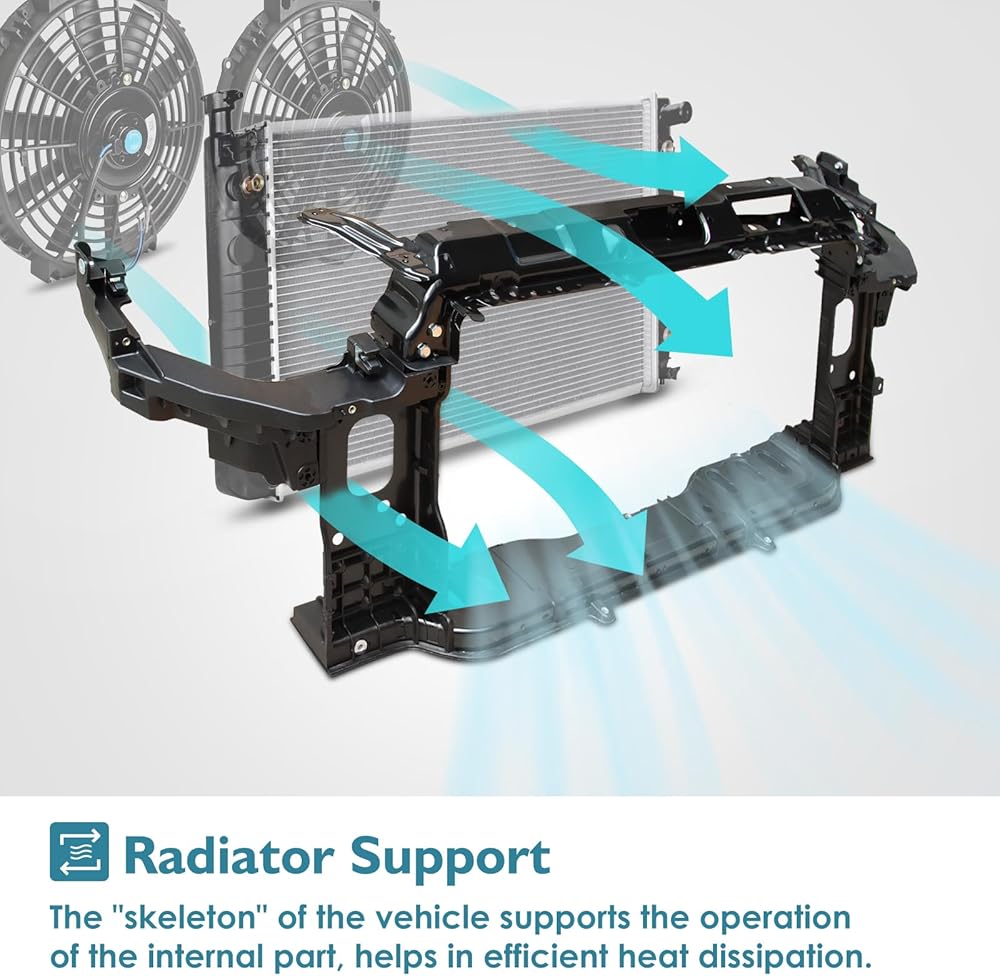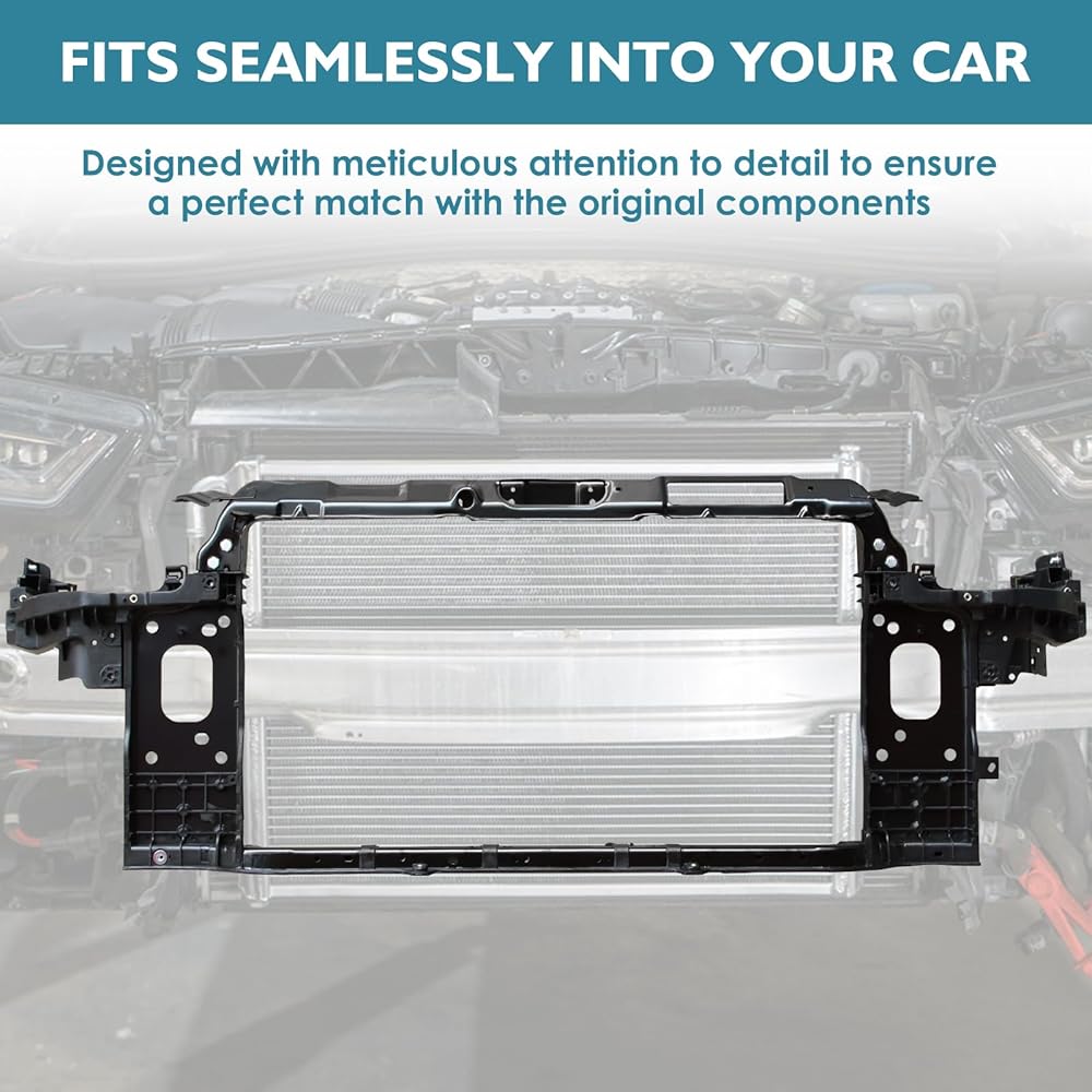 This structural component serves to securely position and protect cooling elements in the front end of vehicles. It provides essential support during repair, maintenance, or part replacement scenarios. Made from durable plastic for longevity and repeated use. Features easy bolt-on installation without requiring special tools for straightforward integrated replacement. Ensures proper alignment and spacing supporting overall front-end performance and system operation. Maintains clean airflow in tight compartments when service requires disassembly. Suitable for various front-end restorative applications or when section damage demands durable core framework.