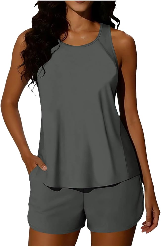 VERSATILE SWIMWEAR: Women's Tankini Swimsuit with Shorts, Two Piece Bathing Suit, Blouson Tummy Control Sporty Swimwear 2026, The tankini design allows for easy mix-and-match options while providing more coverage than traditional bikinis, perfect for swimming, beach activities, or poolside lounging