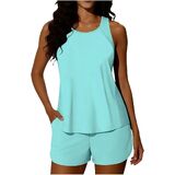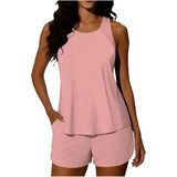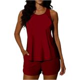 Women's Tankini Swimsuits Tummy Control Bathing Suits Two Piece T-Back Blouson Swim Tops with Shorts Sporty Swimwear