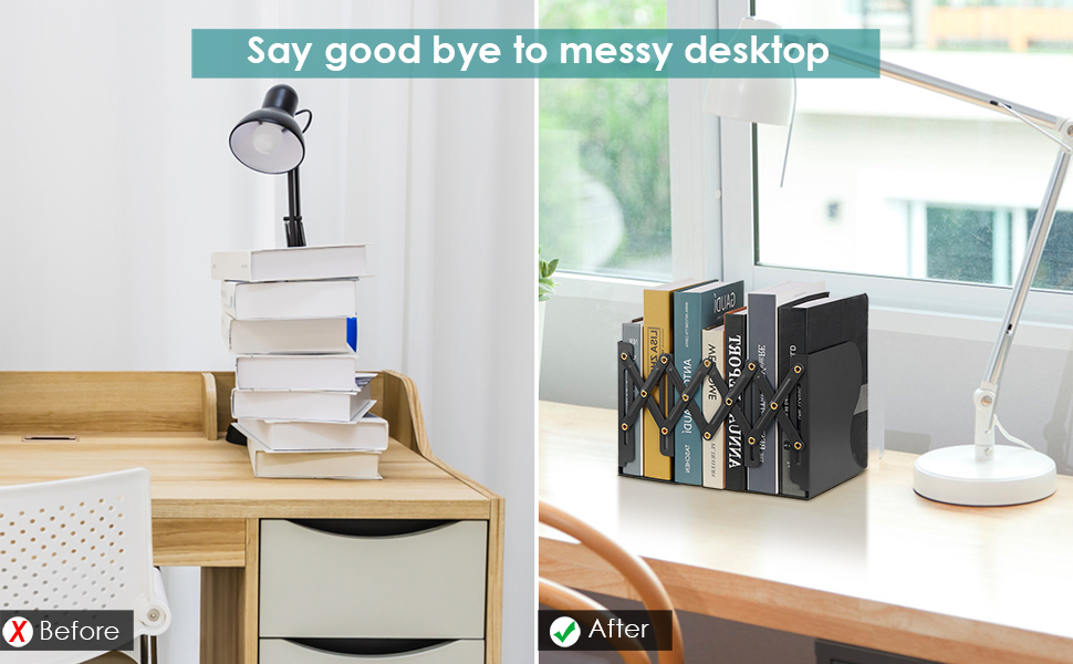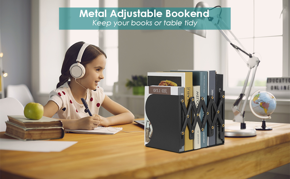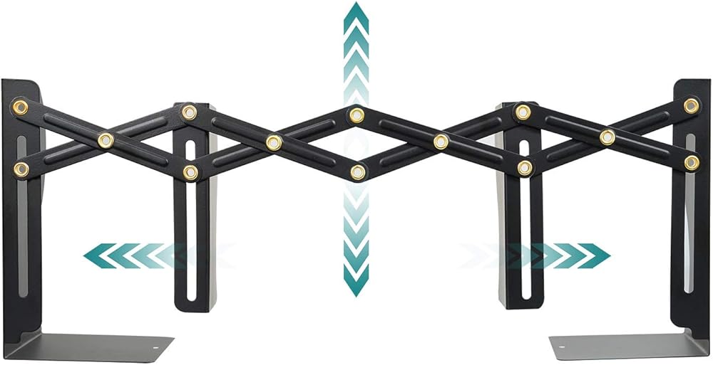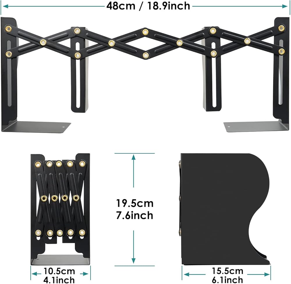 نهايات كتب قابلة للتوسيع والتعديل: يتميز حامل الكتب القابل للتعديل هذا بالمرونة ويمكن إعادة حجمه وفقًا لعدد الكتب؛ طول رائع قابل للسحب من 4.13 بوصة إلى 19 بوصة لتلبية المتطلبات المختلفة.