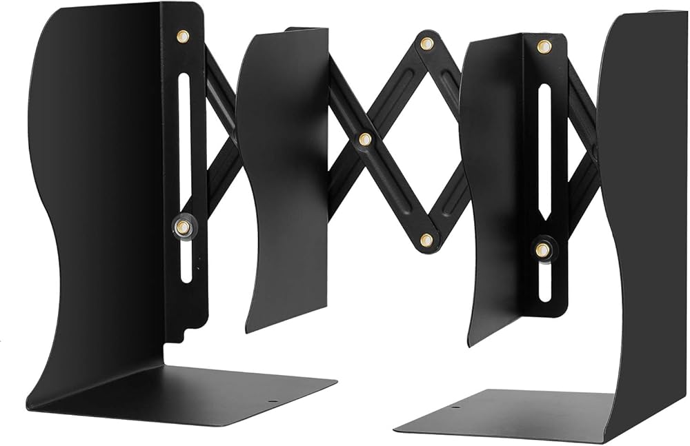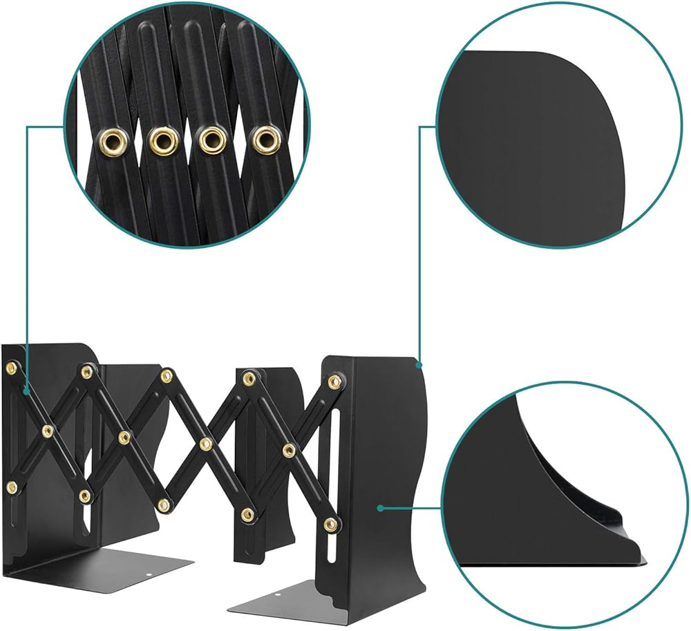 نهايات كتب قابلة للتعديل، نهايات كتب معدنية شديدة التحمل، حامل كتب قابل للتوسيع، حامل رف رف لتخزين منظم ملفات الكتب في مكتب الطلاب، يمتد حتى 19 بوصة (أسود)