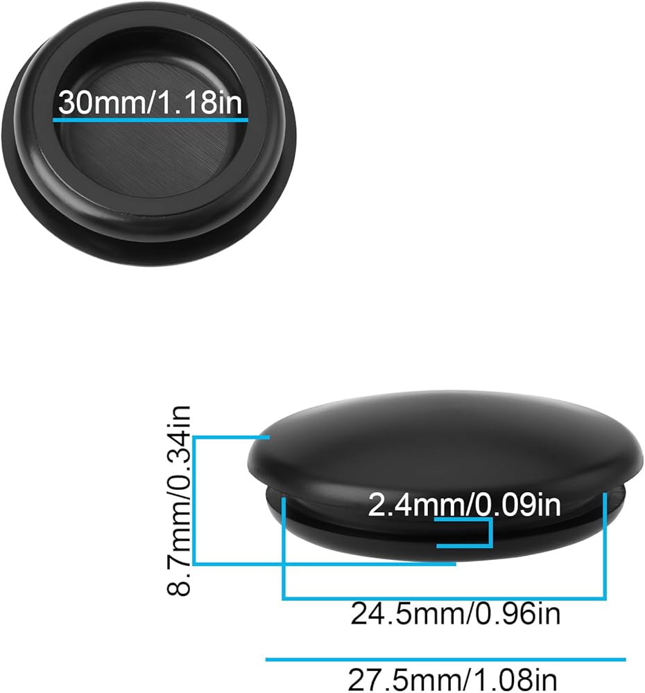 • الأبعاد الدقيقة: القطر الخارجي 30 مم، قطر الفتحة 24.5 مم، الارتفاع الإجمالي 8.7 مم، يناسب فتحة المرآة بشكل آمن.