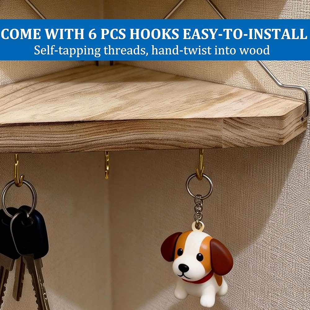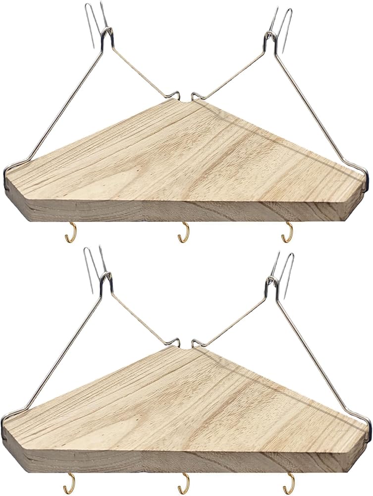 رف زاوية حائط من القماش مع خطافات، قطعتان من رف تخزين منظم للمكعبات الخشبية مع ملحقات حجرة الشماعات للنساء والرجال وديكور المكتب/المكتب - موفر للمساحة - لا يوجد مثقاب