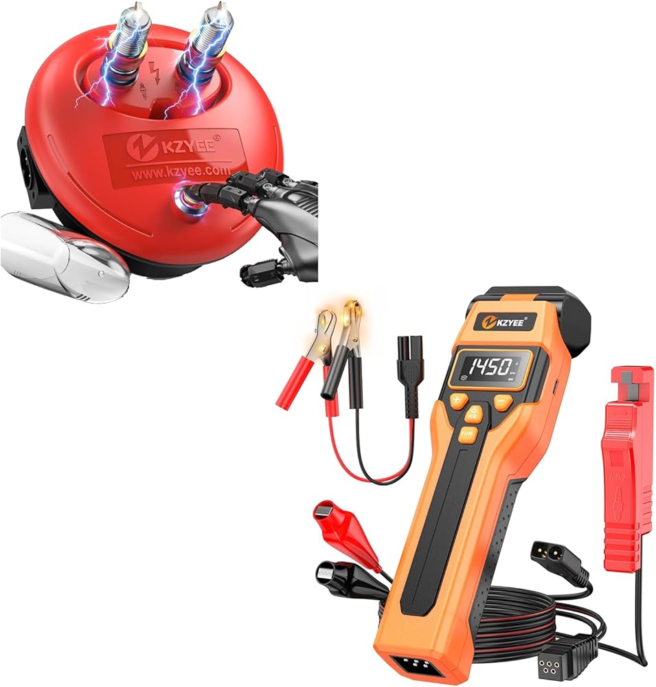 KZYEE KT80 Digital Timing Light with LED Strobe, RPM/Tach, Advance Angle, Dwell, True 0–35V Voltage Test, USB-C Rechargeable & 12V Backup and KZYEE KS30 Spark Plug Tester