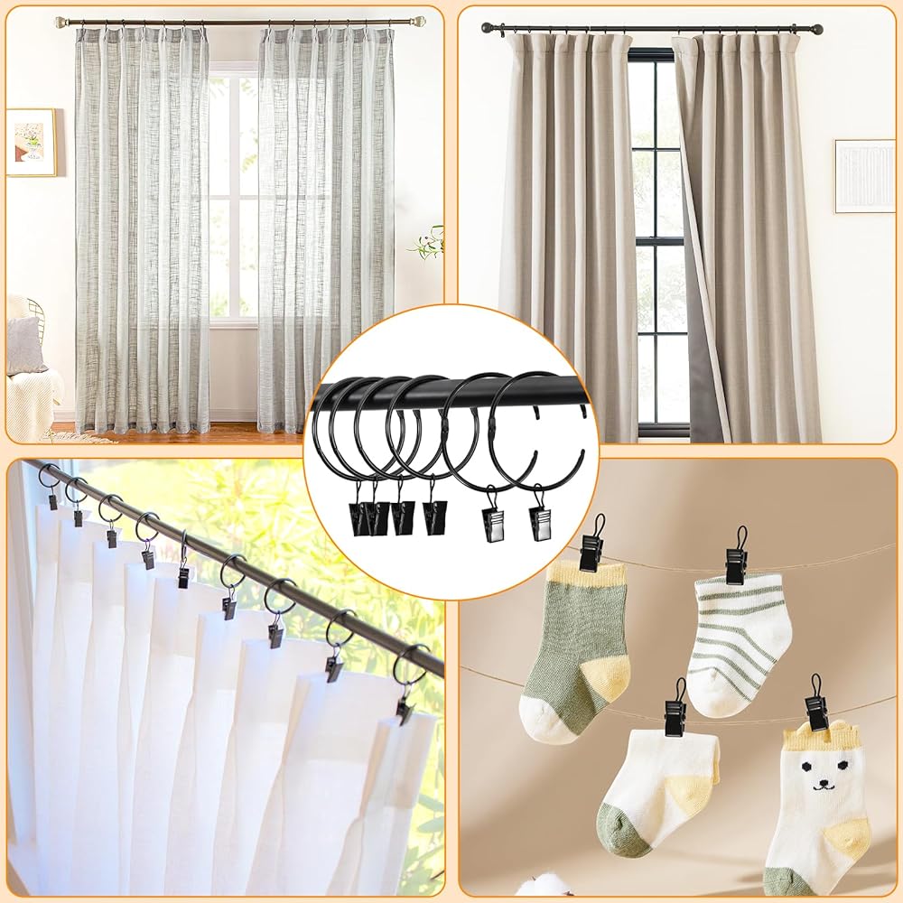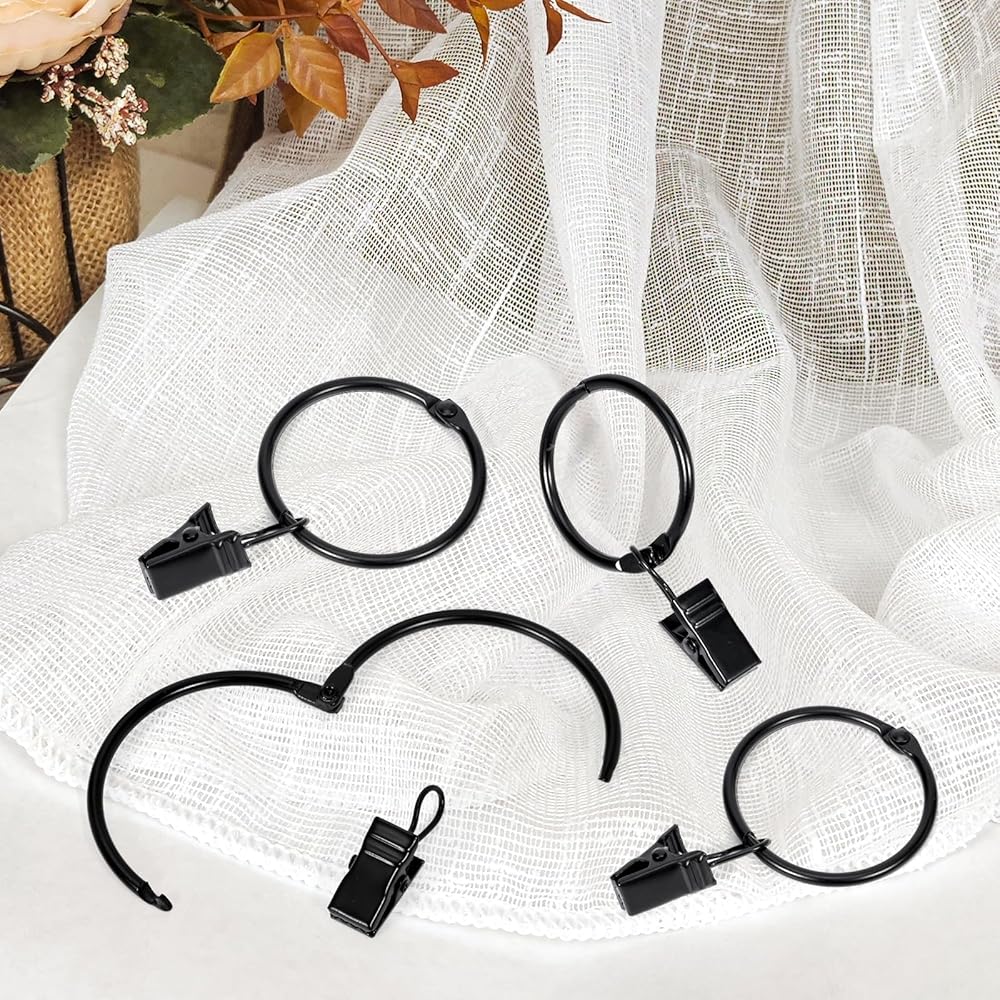 The openable curtain hangers' clips also known as - drapery curtain rings / clip rings for curtains / curtain rod clips with rings / black curtain clips / curtain ring / curtain hooks for curtain rod / curtain hooks for drapes